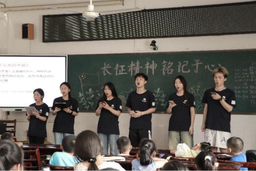 此次活动主要分为“重温长征路”与“唱响主旋律”两部分。第一部分着重介绍长征路线图以及长征过程中的红色故事,引发同学们对于长征精神的思考与感悟,从而进一步培养学生艰苦奋斗、爱国爱党的民族精神,并在学习、生活中不断用这个精神去激励、鼓舞自己。第二部分则为红色歌曲的演唱与诗歌朗诵,实践团成员为大家带来了《我的爱人你可听见》、《灯火里的中国》等歌曲表演,全体同学起立朗诵诗歌《七律·长征》,活动在师生合唱《我和我的祖国》中步入尾声。
