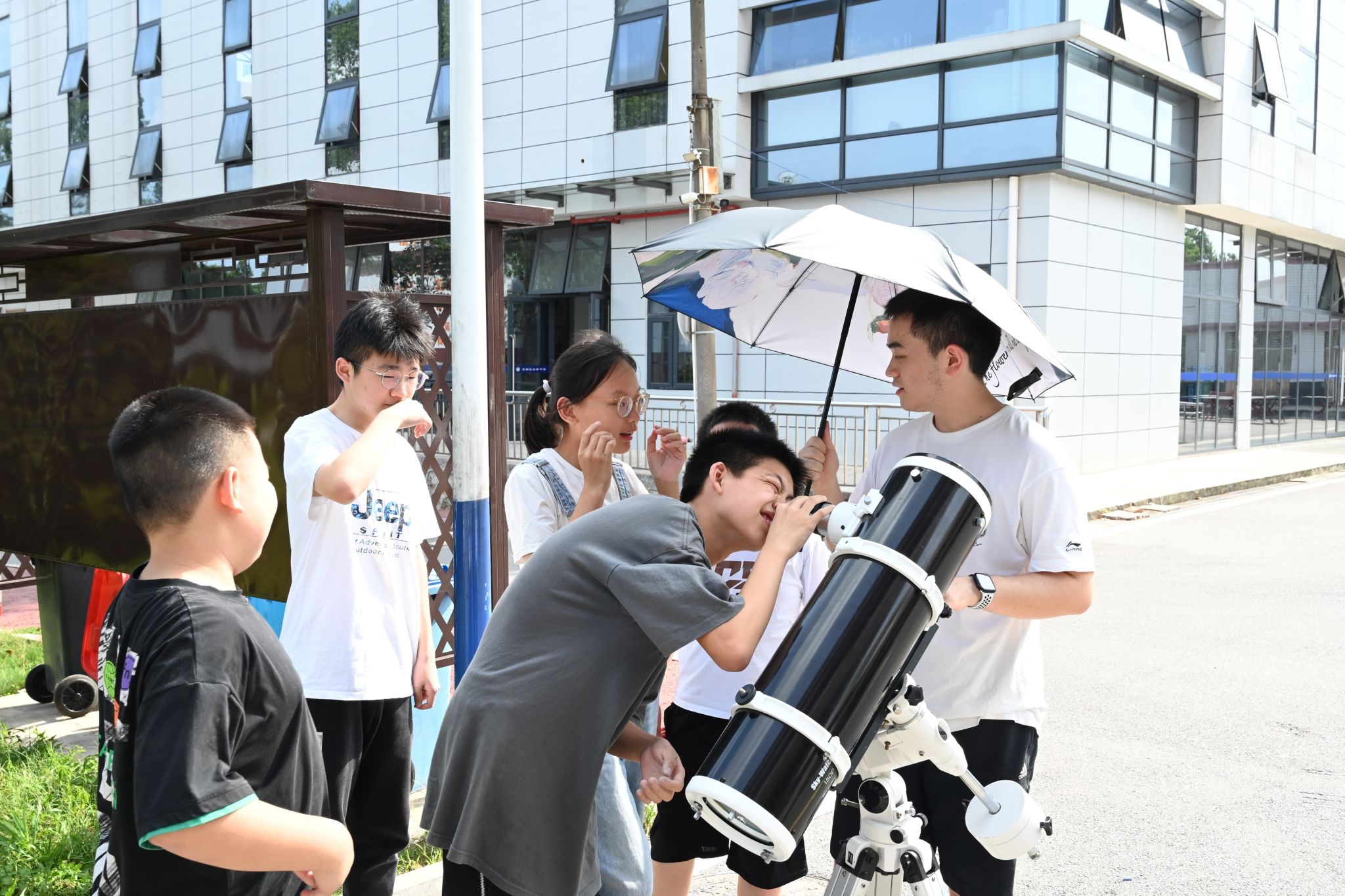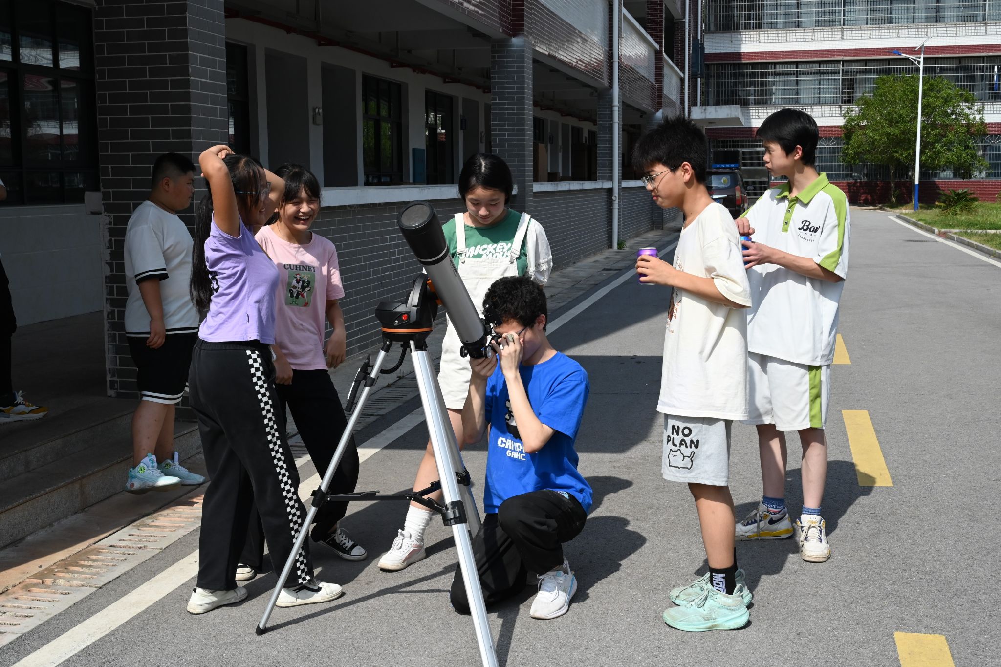 (通讯员 段楚楚 袁俊 涂月华)7月15日上午,来自太阳成集团tyc物理与电子科学学院阳光教育协会的“灿箬百星“三下乡支教队伍于长沙市望城区白箬镇白箬中学开展天文观测与讲解系列活动。此次活动以“太阳黑子”为主题,太阳成集团tyc天文馆协助开展此次活动,来自太阳成集团tyc物理与电子科学学院天文协会理事会的王淇鑫、熊哲、罗俊,袁俊担任讲解员。