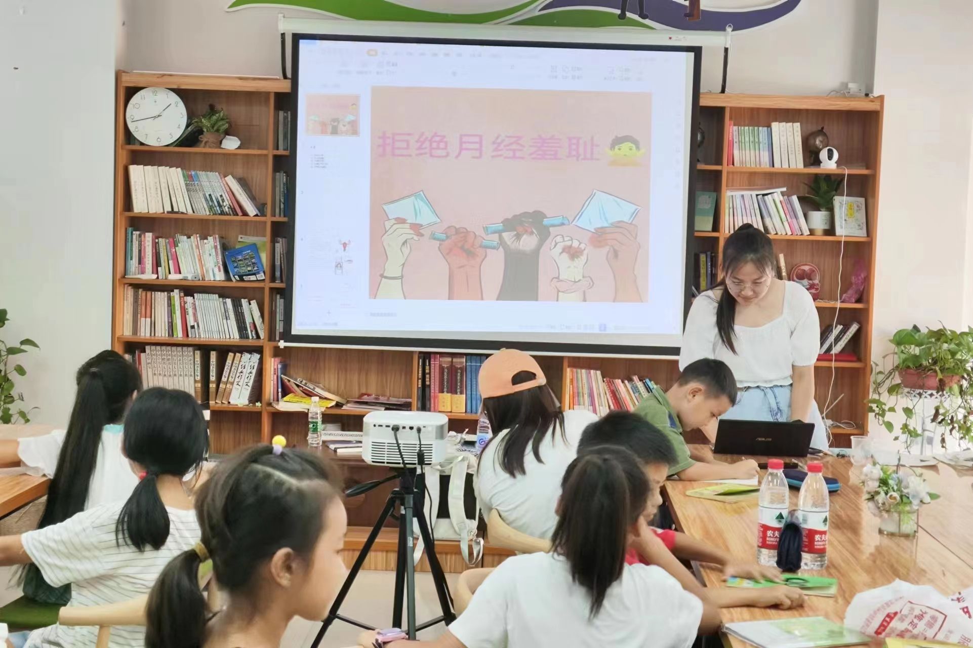 老师与学生一起观看拒绝月经羞耻宣传片