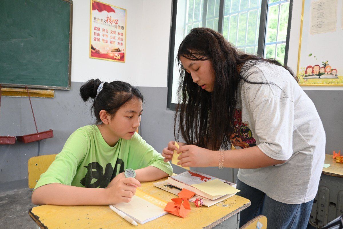 在“破冰课堂”上,实践团队长向语嫣为学生带来六种情绪的演绎,希望使学生懂得如何正确表达自己的情绪;在“趣味游戏”中,实践团队员李倩如与学生共同进行了“大风吹”等多个游戏,拉近了师生之间的距离;在“手工扎染”及“趣味折纸”中,实践团成员廖西和黄语安分别指导学生完成手工作品,锻炼学生的动手能力。