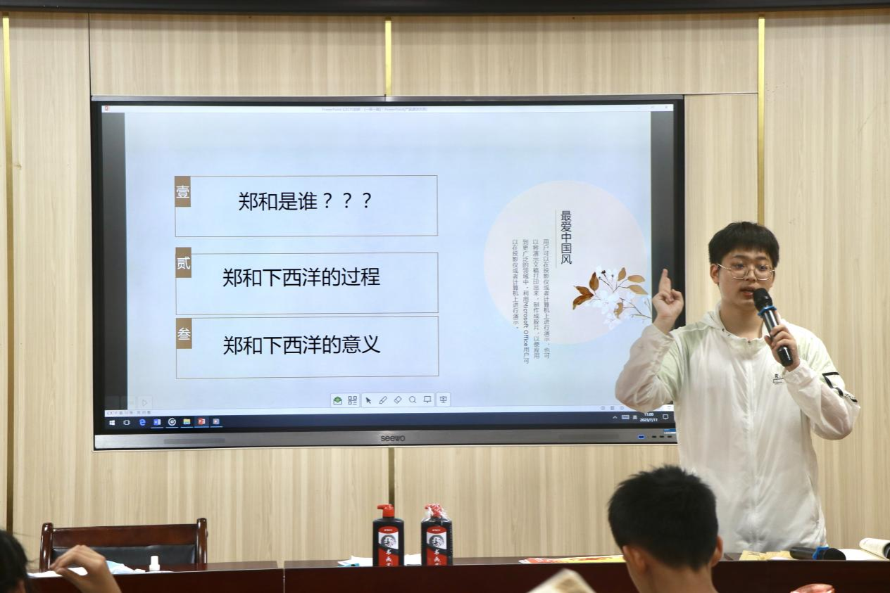 李正以人物为引,分别从中国的“三宝太监”郑和与西方的马可波罗的视角展开叙述,为同学们讲述中外文化交流的悠久历史、古丝绸之路开创的艰难历程及其深远意义。李正用中国助力马尔代夫实现“桥梁梦”、坦赞铁路、中欧班列等具体实例为同学们简单描绘了当代“一带一路”的宏大蓝图,引导同学们将新老丝绸之路进行比较,从中感悟我国近代以来经济发展之迅速以及“一带一路”合作倡议的伟大之处。