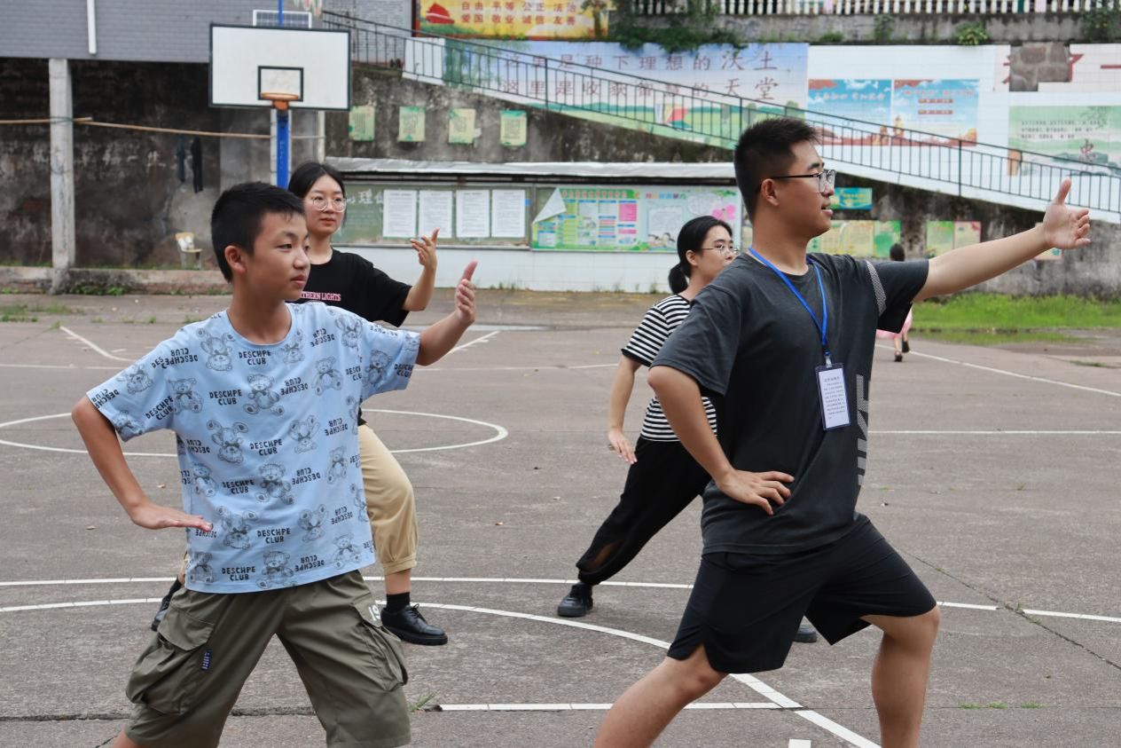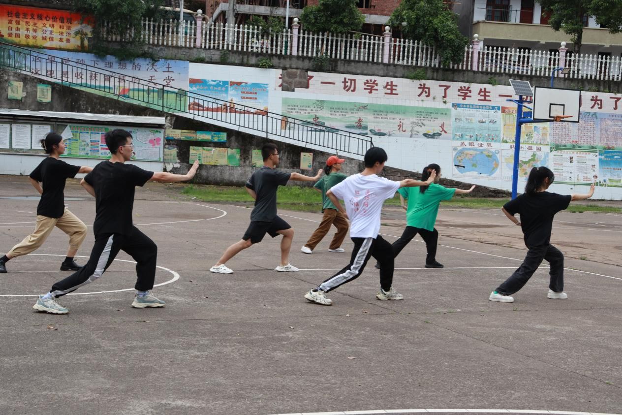 (通讯员 戈欢庆 刘润红)7月14日,为缓解学生学习压力、激发学习兴趣,医学院“红心相伴,医路同行”暑期赴沅陵深溪口村社会实践团队再次开展爱心支教专项活动。在调查当地的传统文化传播现状和学习对象的兴趣偏好后,团队支教组成员选定二十四式太极拳作为本次教学的主要内容。