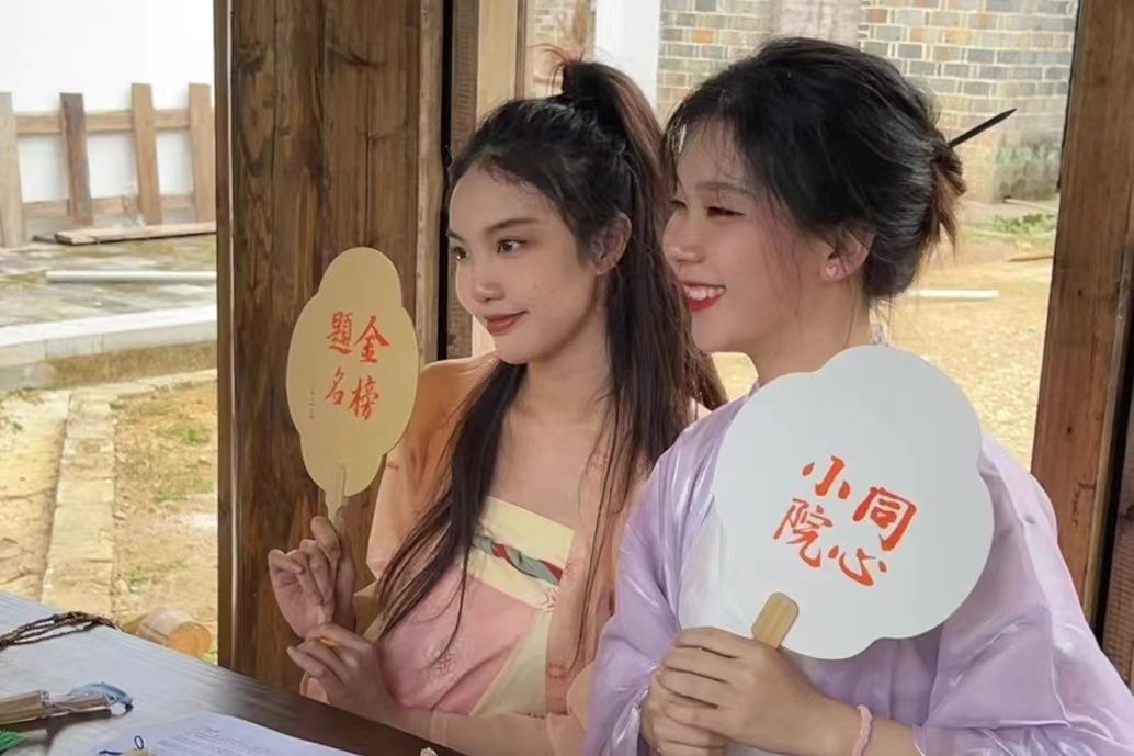 此次直播以我校设计建造的同心小院为空间载体,以乡村文化科普和直播带货为目标,通过短视频直播的方式宣传当地的“吃住行”,“游购娱”,乡土民间技艺与特色农产品。在做好充分的前期准备之后,我校音院学子身穿汉服,在镜头前全方位地向观众进行文创产品的介绍,并邀请指导老师沈竹为文创产品现场题字。线上观众热情活跃,取得了良好的直播效果。