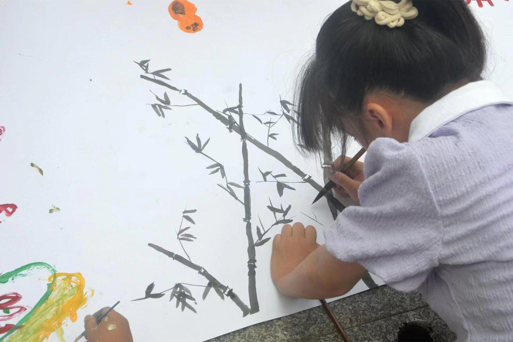 长卷绘画课上学生画竹子