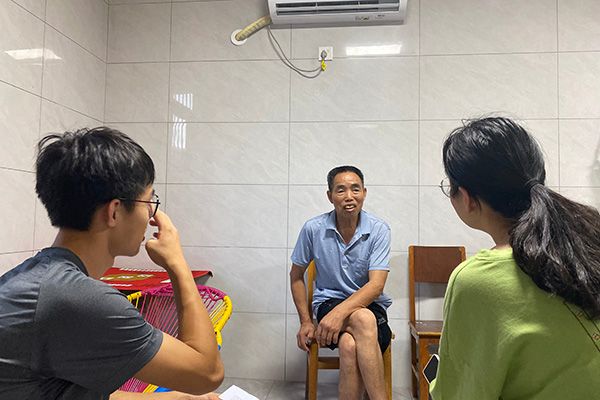罗立山正在接受调研组成员采访