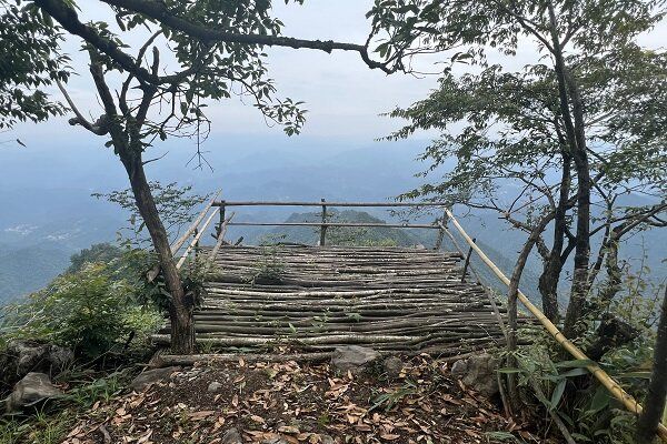 7月18日上午,第四小组成员邓唐皓、孟思艺、黄子轩随村委干部走访斋公坪村正在开发的特色旅游资源——山顶观景台。观景台秉承就地取材的理念,选取当地木材进行搭建,与层叠的远山、翻滚的云海构成了奇绝的特色景观。