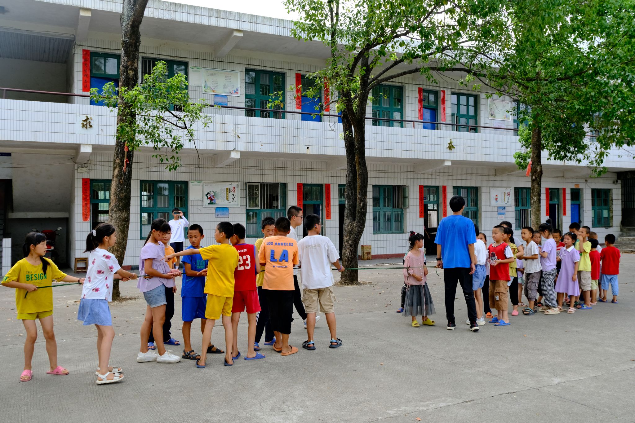 此次趣味运动会分为个人项目与集体项目共计十余项。迎面接力、跳绳接力、拔河比赛等集体项目锻炼了学生们的团队协作能力,抢椅子、摸石头过河等个人项目赛出了学生们的自信和个人风采。运动会进行过程中,支教队队员积极组织,维持会场秩序,为参赛学生提供后勤保障。