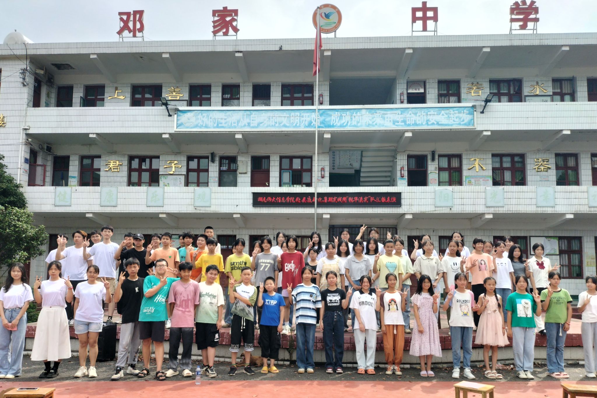 实践团全体成员与学生们合影留念