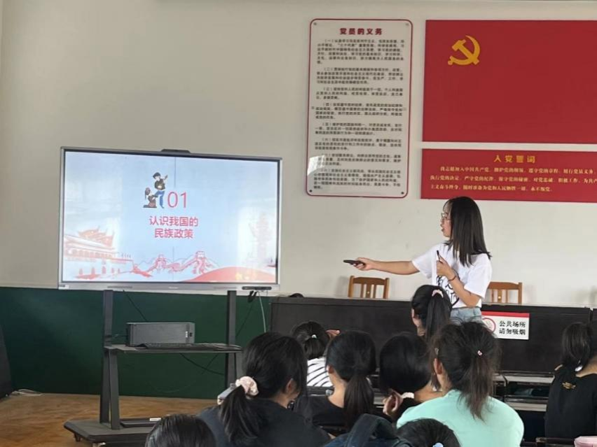 (通讯员 薛阁琳)7月20日,信息科学与工程学院赴岳阳市华容县治河渡镇治河中学“湘约”暑期社会实践队开展以“民族大团结,共筑中国梦”为主题的民族团结主题宣讲活动。