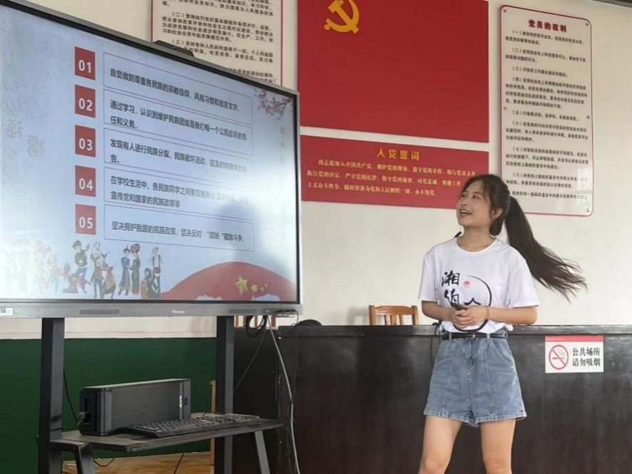 湘约队成员向学生介绍民族政策