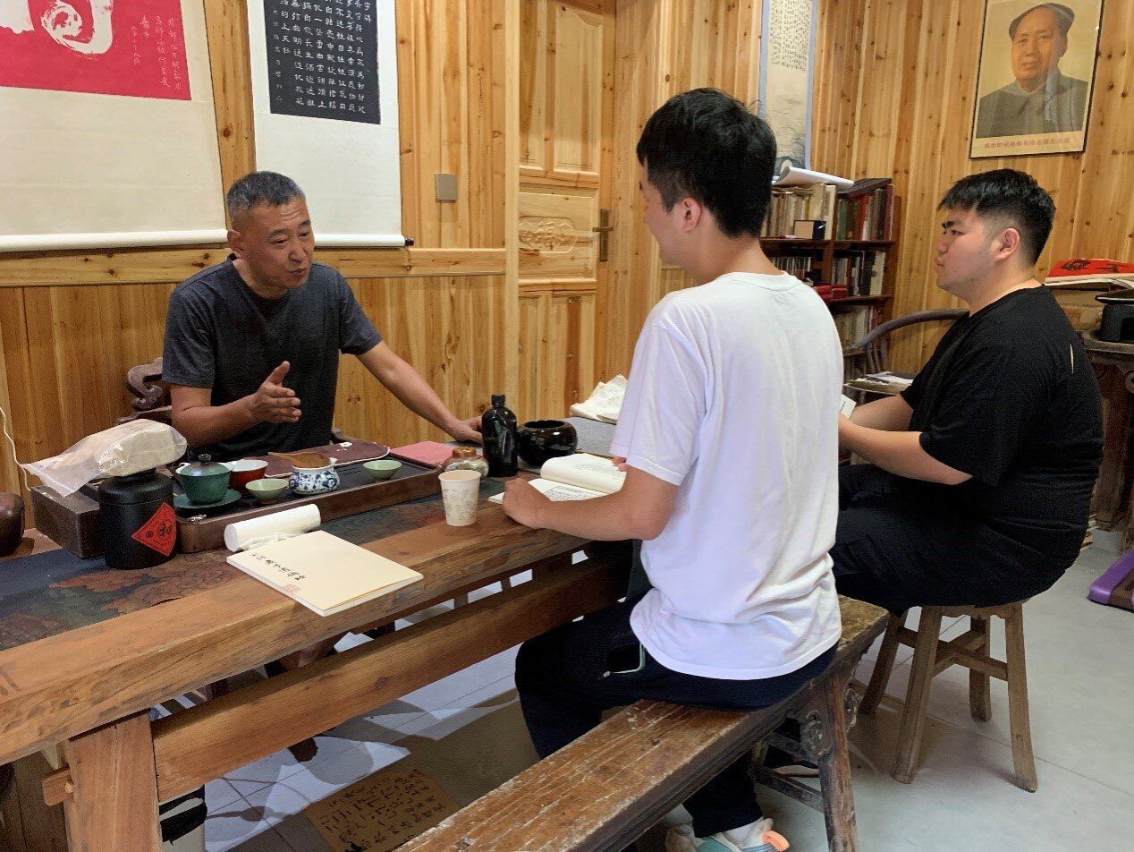 7月21日下午,第四小组成员邓唐皓、黄子轩、孟思艺在钟科书记的带领下参观了一家村民自己出资、免费对外开放的书屋。在与书屋主人马岩的交流过程中,第四小组的成员了解到马岩不仅在斋公坪建设了书屋,在大理等地方也开设了类似的公益性书屋。马岩平时不仅会带动着家里的老人小孩儿临摹古帖、熟读经典,遇上不识字的村民,他还会为其诵读、传道解惑。书屋主人马岩赠送了第四小组成员各一本《宋刊老子道德经》,他希望新一代的青年们能重拾对传统国学的关注与喜爱。