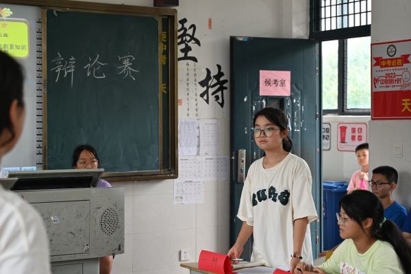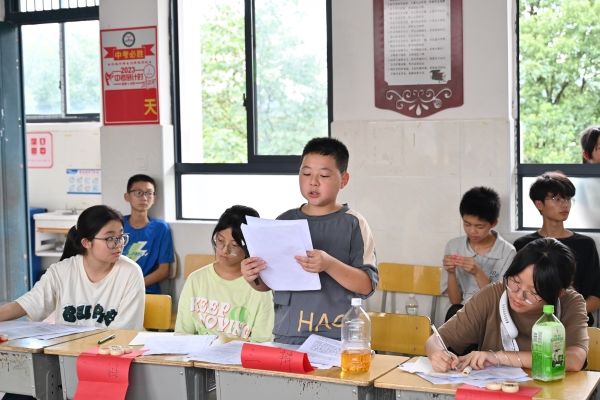 (通讯员 涂月华 段楚楚)为了丰富同学们的课余生活,张扬自我个性,活跃学校气氛,7月24日下午,物电院“灿箬百星”支教队联合世承书院“薪火予你”实践团于白箬中学开展班级对抗辩论赛。此次辩论赛由“灿箬百星”支教队队员刘慧熙主持,“灿箬百星”支教队队员白蒙浩,李承锦与“薪火予你”实践团成员谢湘萍,张子聪担任评委。