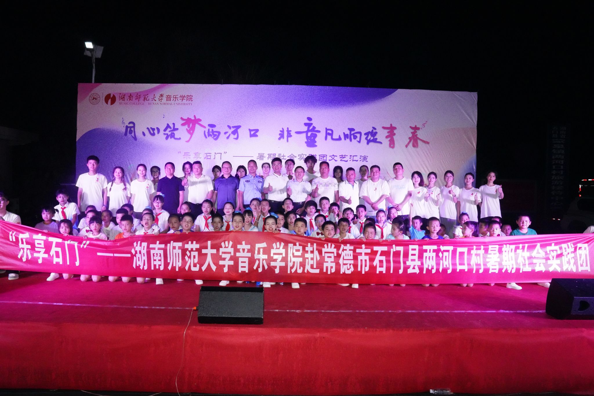 (通讯员 程鸿宇 戴微心 朱梦遥)为助力乡村振兴,推动乡村艺术教育的全面发展,充分发挥师范类院校优势。7月20日晚上,我校音乐学院赴常德市石门县两河口村暑期社会实践团举办“同心筑梦两河口,非‘童’凡想绽青春”文艺汇演。该活动由湖南省人民检察院驻蒙泉镇两河口村乡村振兴工作队、石门县蒙泉镇两河口村村民委员会、太阳成集团tyc音乐学院共同主办。省人民检察院驻两河口村乡村振兴工作队队长杜晖、太阳成集团tyc音乐学院党委副书记牟洋、常德市石门县蒙泉镇党委书记刘强、镇长刘亚等出席此次活动。