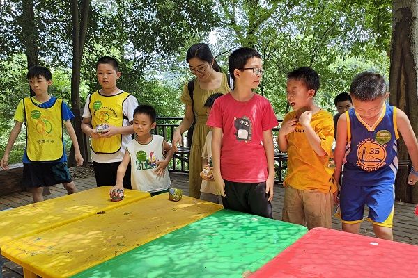 19日上午,实践团全体成员召开嘉年华策划会议,实践队队长李冰月和副队长韩淑婷分发策划案,并为各位队员分配任务。奇稷布谷校长华传辉进一步细化嘉年华项目。20日上午,全体成员迎接50组家庭并于奇稷布谷稷下草坪举行嘉年华开营仪式。随后,所有小朋友分成四组,分别由四位成员带领前往相应场地参加嘉年华活动。此次嘉年华由搭建昆虫屋、土地退化实验、垃圾分类投篮小游戏、植物拓印四项活动组成,从保护昆虫栖息地、保护植被、垃圾分类、植物多样性方面增强儿童自然环境保护意识,提高生物综合素养。