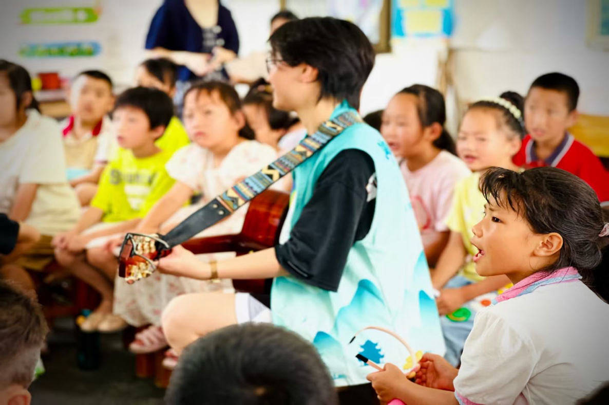 团队在安化县偏远农村地区开设美术、书法、安化山歌、朗诵、舞蹈等课程,通过“小小红色演说家”“童声飞扬”音乐课、“旋转跳跃”舞蹈课等一系列活动,丰富乡村文化艺术教育资源,提升孩子们的艺术素养,并与安化电视台开展大型文艺展演,通过美育展演宣讲推广普通话。
