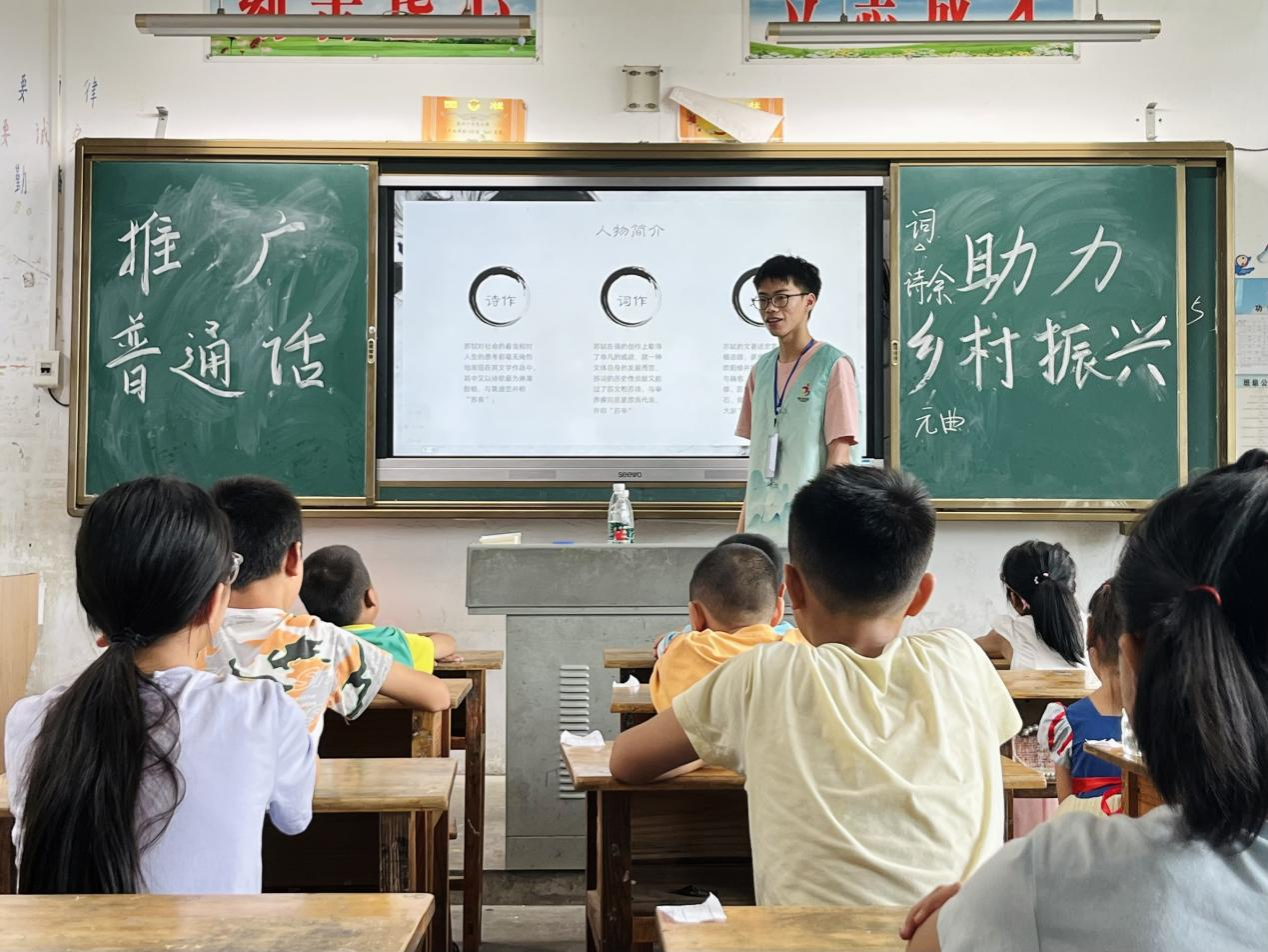 团队与当地5所村小对接,开展数字化教育教学,通过“线上+线下”方式推广宣讲普通话,共同打造一批本土化、适应性的乡村青少年数字微课,开启城市小学生联动乡村小学生“共育帮扶成长行动”。