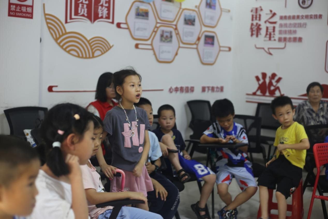 (通讯员 付萱仪)为立足儿童视角创新社区治理,7月30日下午,长沙市望城区白沙洲街道同心园社区雷锋号青少年关爱家园与我校“迷彩绿国旗红”暑期社会实践团在同心园社区雷锋驿站联合开展“扬新风”社区治理课程实践。此次课程由团队成员付萱仪主讲,社区志愿者与全体“同心筑梦”夏令营成员共同参与本次课程。