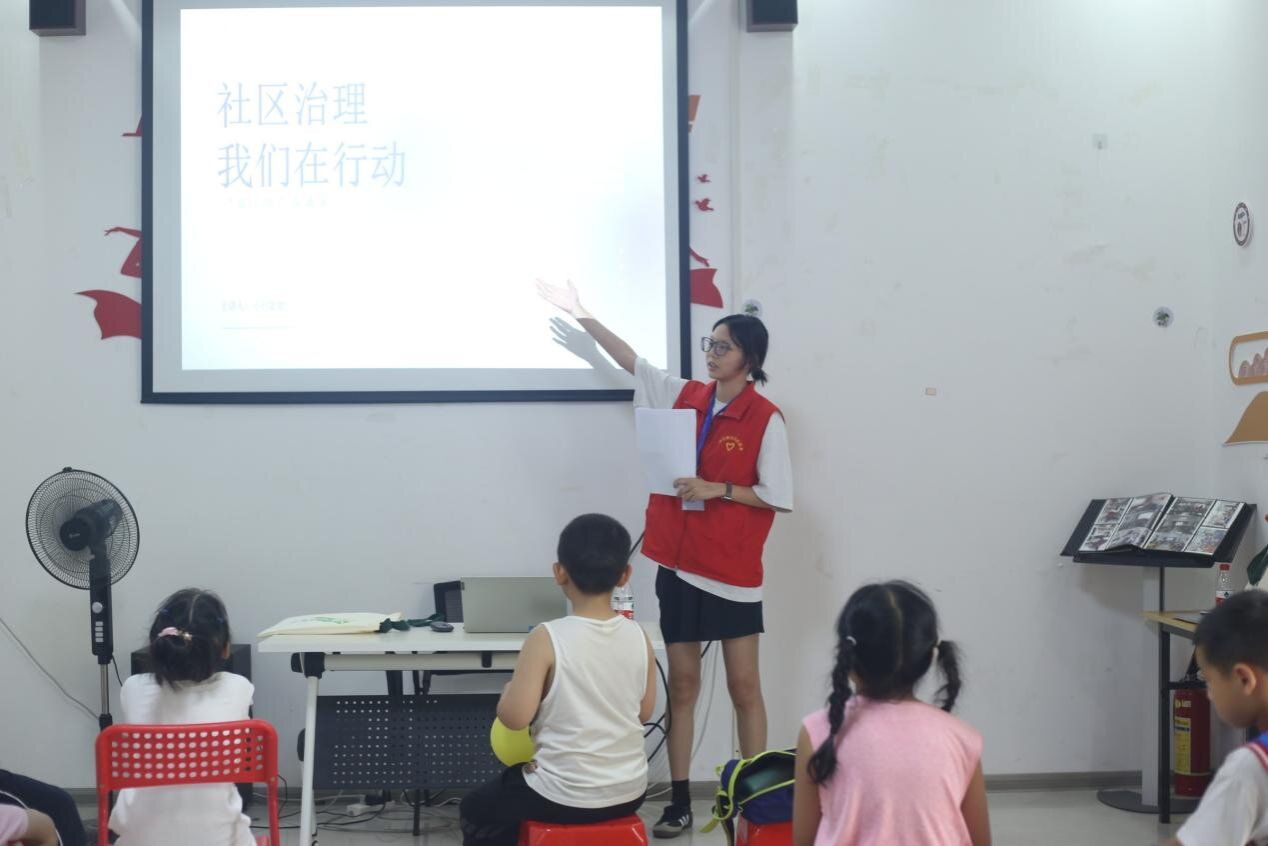 付萱仪为孩子们讲述社区治理的概念