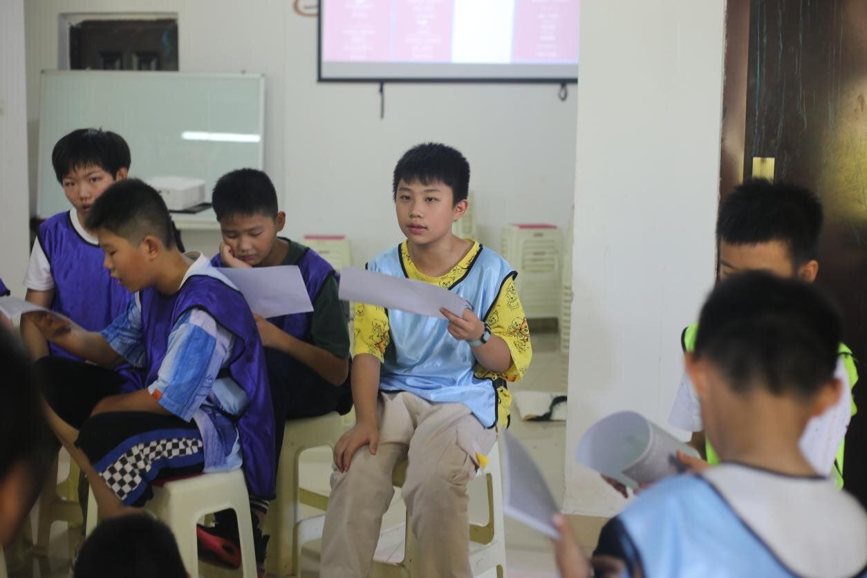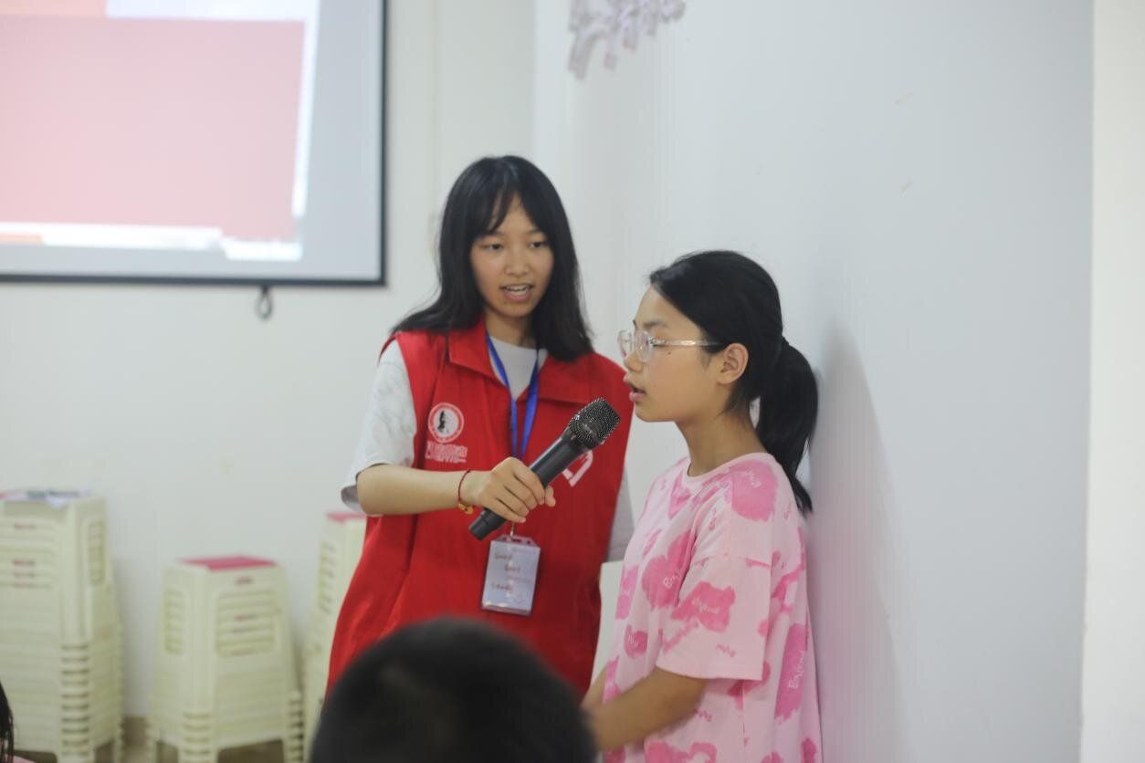 在活动中,主持人汪澜带领孩子挥动双手迈出双脚、在合唱中享受音乐、解放天性。教学过程中汪澜应用互动的形式,鼓励孩子们积极参与活动,并且以视频,图文等多种表现手段,引导孩子们尽情地感受身体随音乐律动的快乐。活动过程中,汪澜先用舒缓的音乐带领孩子们随着音乐放松下来。通过简谱的教学和节奏的练习,汪澜带孩子们初步走进了音乐的世界。在学习基础乐理知识之余,老师与孩子们共同完成了文艺汇演歌曲的选择。汪澜也根据孩子们的兴趣将汇演的曲目确定为:《七色光》《勇气大爆发》《走,一起去看日出吧》。除了在选曲方面下功夫,汪澜还让孩子们自由分组、由小组长带领进行练习,从而充分调动了孩子们的积极性。同时,汪澜也开展了合唱的教学,并与其他助教对于个别同学的进行问题进行了一对一的规范。同学们积极参与活动,跟随老师完成分解动作的学习,依据计划完成了此次活动的目标。