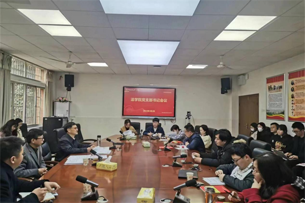 (通讯员 王泽润 张逸寒 梁延喆)3月3日下午,法学院在304会议室召开党支部书记会议。法学院党委书记唐建文出席会议,会议由正处级专职组织员陈胜国主持。