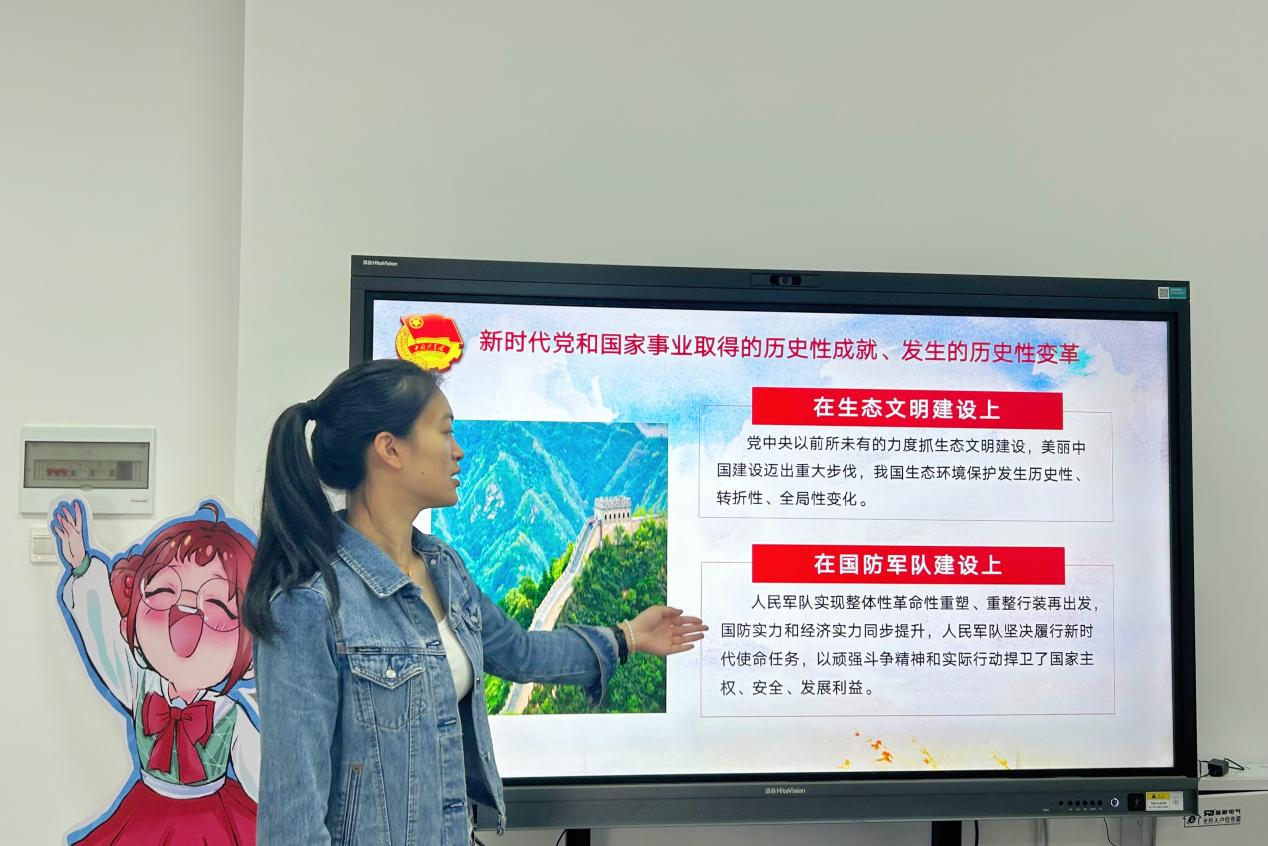 研支团全体成员在徐筱迪的主持下,以观看视频、研讨辨析等形式学习了新时代党和国家事业取得的历史性成就和发生的历史性变革,深刻领悟了“两个确立”的决定性意义。通过小组讨论的方式,立足自身谈体会,研支团成员代表邓稀月表示,作为研究生支教团的一员,更应该学好文化思想,将其学深用实,施展专业特长,锤炼高尚师德、练就过硬本领,扎根基层、奉献青春。