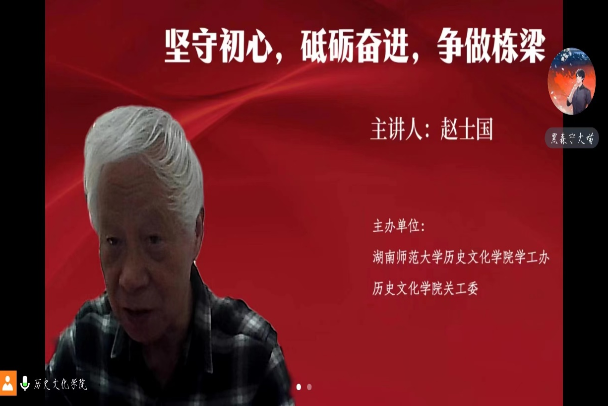(通讯员 匡艳芬 胡海柏)11月3日中午,历史文化学院(以下简称“历文院”)通过线上线下相结合的方式举办了“坚守初心,砥砺奋进,争做栋梁”主题讲座暨2023级新生开学第一课。此次讲座由历文院关工委常务副主任赵士国担任主讲人,2023级辅导员何昊及全体新生参加。