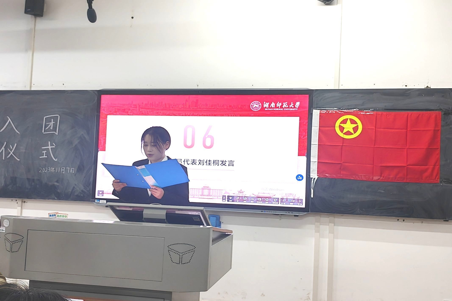 (通讯员 李岚彪 周佳)11月7日中午,化学化工学院2023年新团员入团仪式在化工院117教室举行,院团委学生书记张婧出席此次活动。参加会议的还有2023年新发展团员,第十四届“问鼎”团校全体成员,院团委青年发展工作部,组织部和基层组织建设部成员。此次活动由院团委组织部干事黄嘉懿主持。