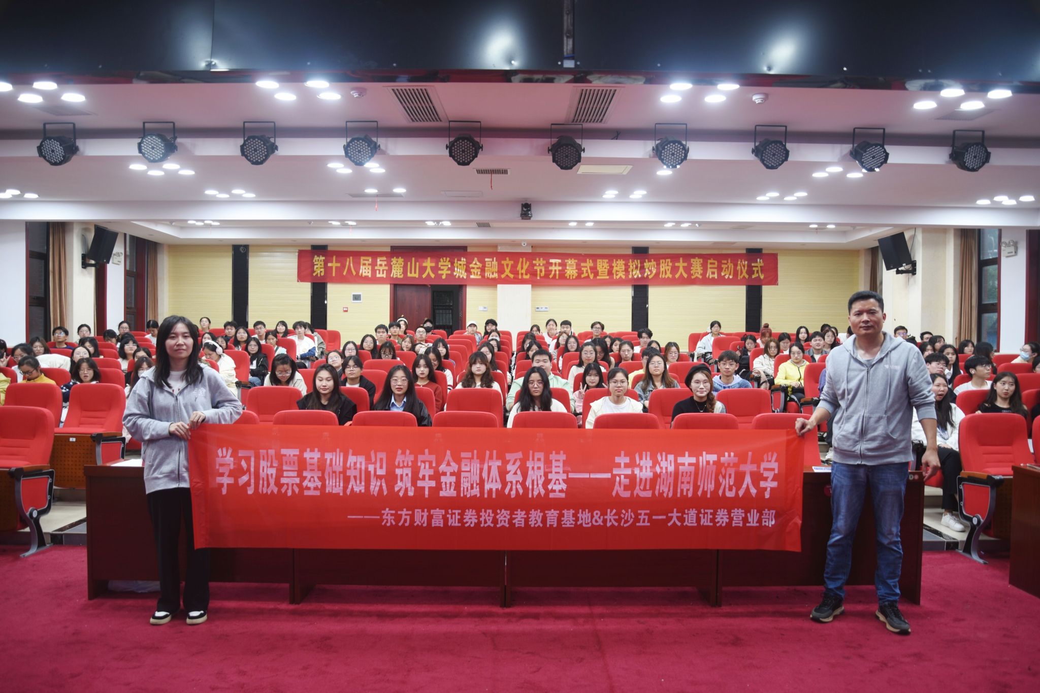 (通讯员 历彦孜 周昕芮 汪子熙)11月9日下午,商学院在中和楼129报告厅举办第十八届岳麓山大学城金融文化节开幕式暨模拟炒股大赛启动仪式。东方财富证券长沙营业部总经理易茶林,东方财富证券营业部综合管理邓惠玲,商学院院长李军,院党委书记何勇,院党委副书记刘杰,副院长曹虹剑,院长助理、团委副书记阳旸,会计学系讲师王达蕴参与此次活动。此次活动由2023级国贸班左於斯和2023级经济学班朱亮臣主持。