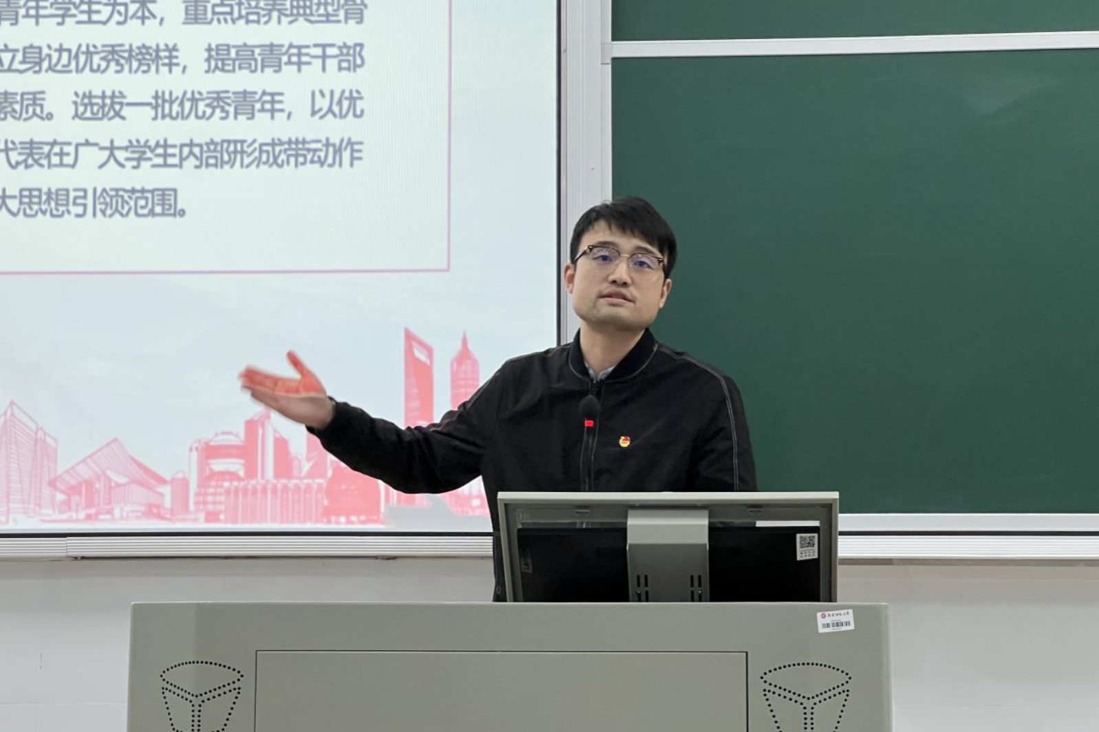 丛杨围绕提高思想引领力、凝聚机构组织力、培养团队向心力、提升学生帮扶力、创新文化影响力、实际效果展示六个方面进行培训。他对过去一年团校关于学生工作的组织、改革、拓展与服务以及取得的成效进行总结,并对学员们未来发展提出新的要求,明确团校工作培养“有理想、敢担当、能吃苦、肯奋斗”的新时代好青年的奋斗目标。