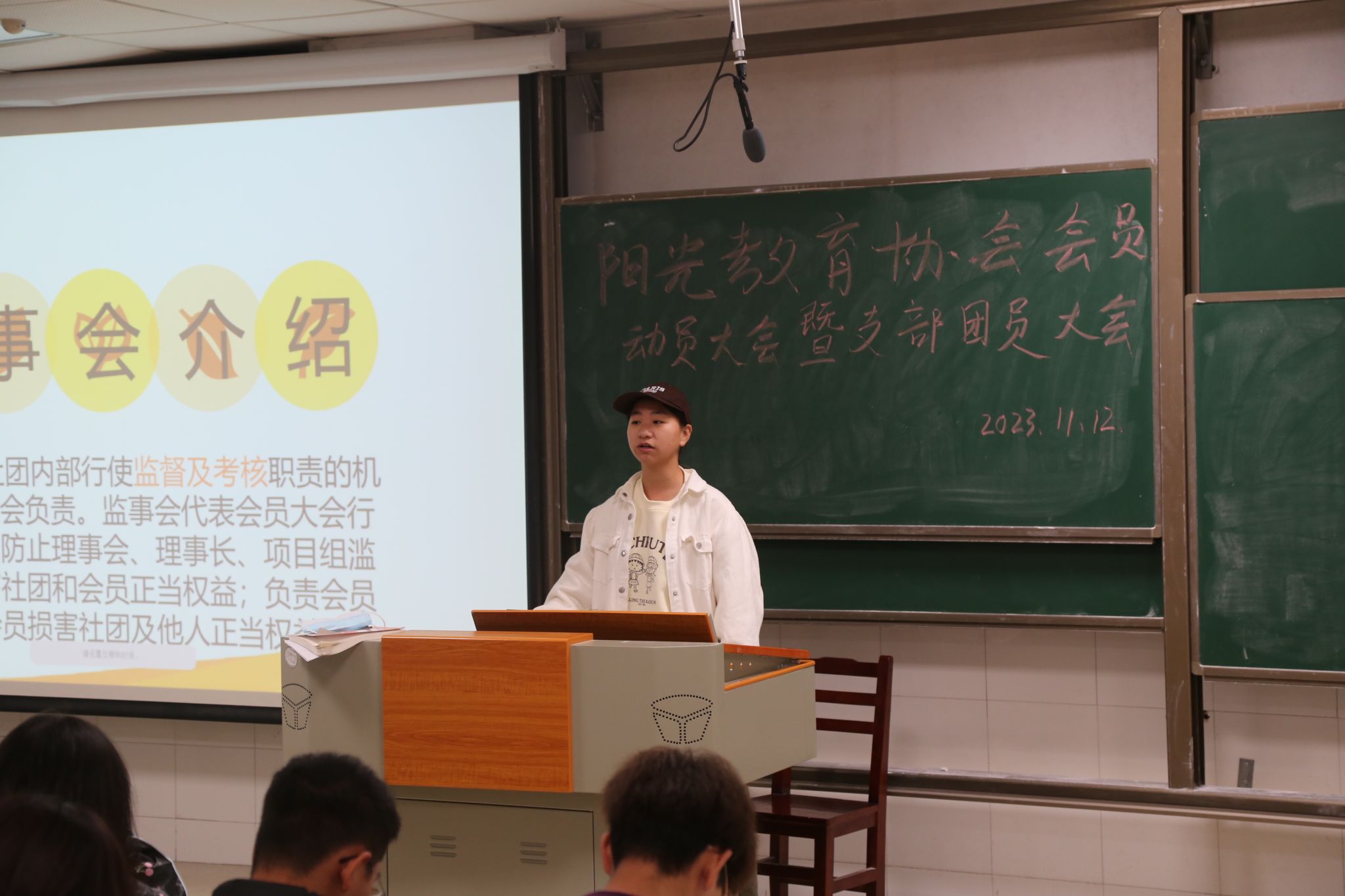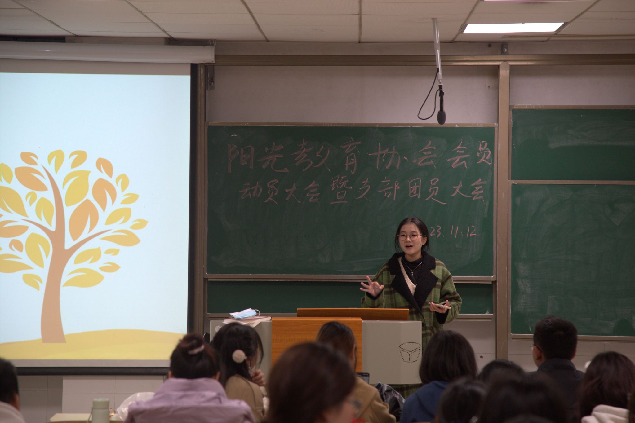 (通讯员 黄浩男 阙岱轩 黄丹)11月12号下午,物理与电子科学学院阳光教育协会于至善楼108教室开展会员动员大会暨支部团员大会。阳光教育协会理事长彭紫琪担任主持人。
