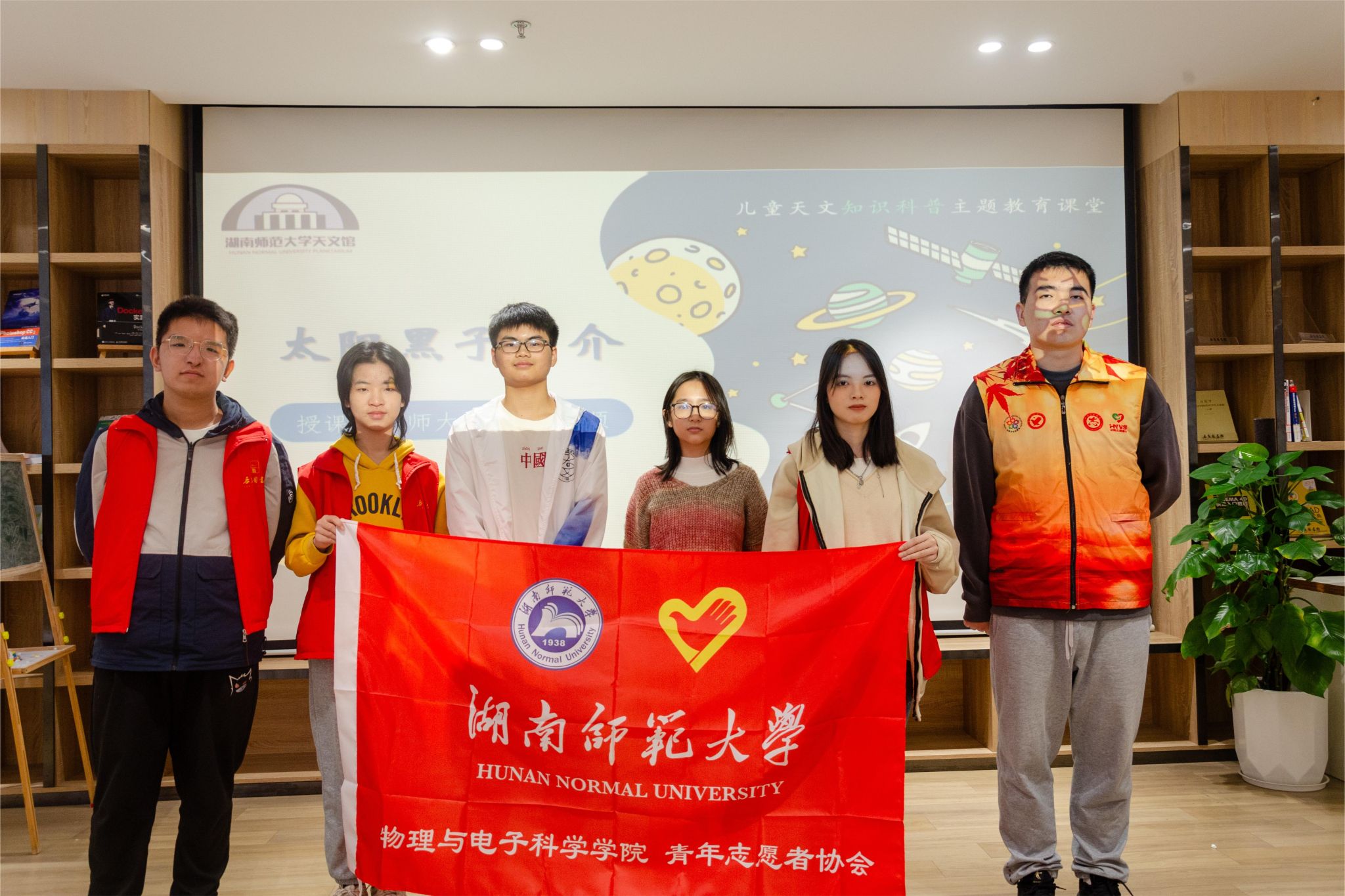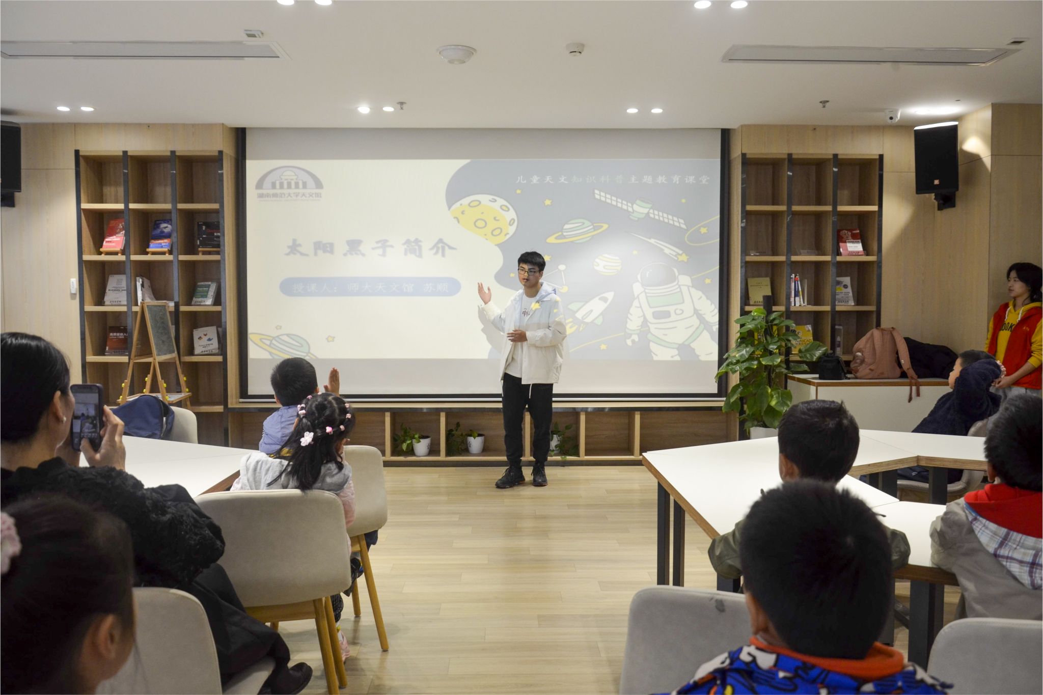 (通讯员 张婧怡 段楚楚)11月18日,物理与电子科学学院天文协会于岳麓区图书馆举办了“太阳黑子的一生”儿童科普活动。物电院4名志愿者参加活动,物电院天文协会干事苏顺担任活动主讲人。