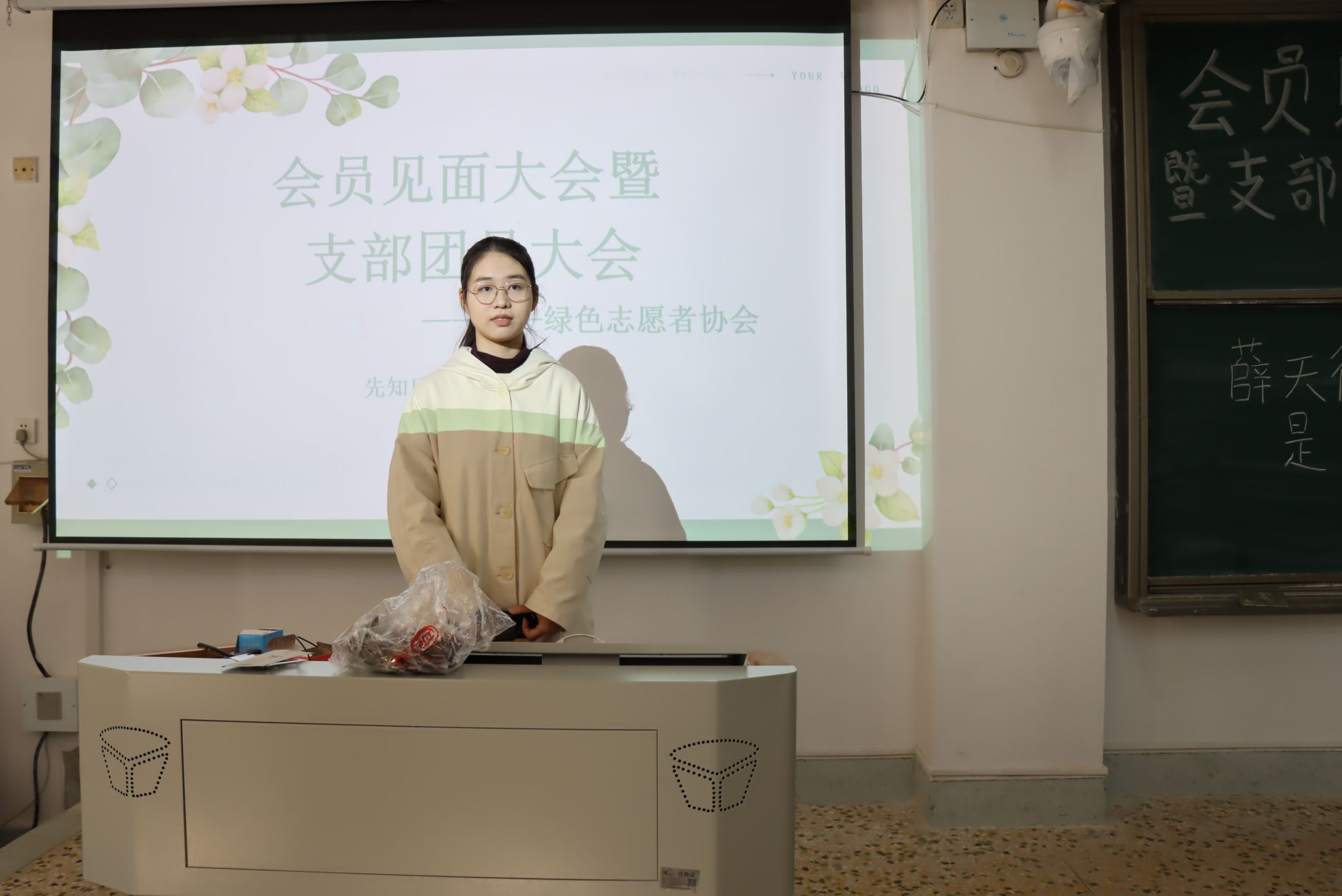 (通讯员 胡铮 杨浩天 唐亘嫣)11月16日,为帮助会员了解社团基本情况和会员的基本权益,数学与统计学院(以下简称“数统院”)学生社团管理服务中心(以下简称“学社管”)绿色志愿者协会(以下简称“绿协”)组织部分绿协会员于格物楼209教室开展会员见面会暨支部团员大会。绿协理事长项悦悦担任主持人。