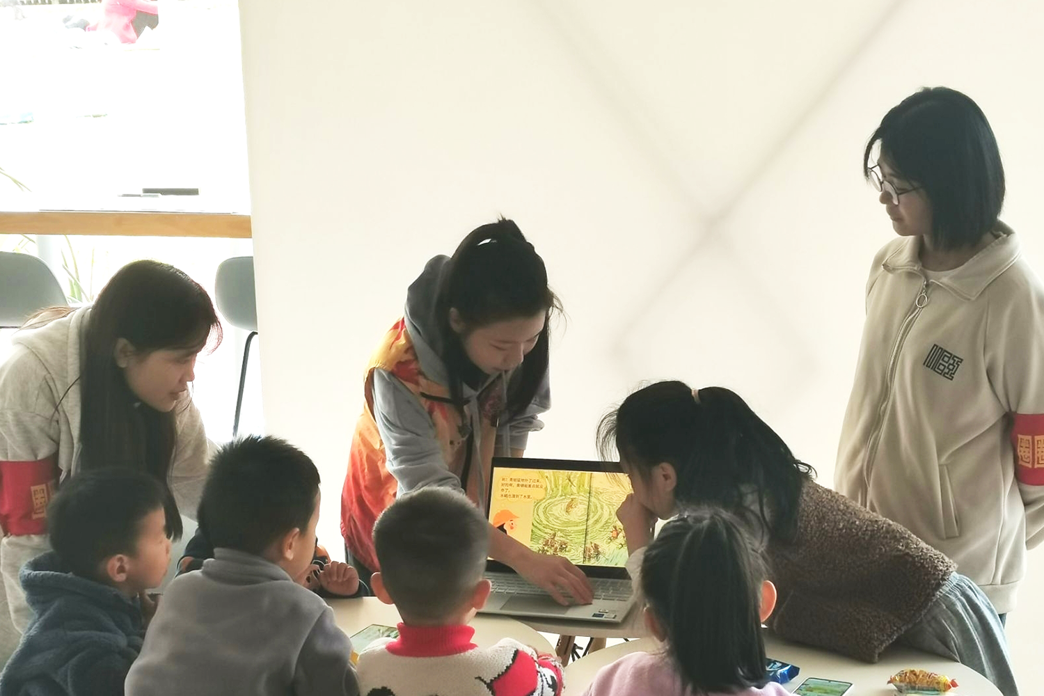 图为活动接近尾声,志愿者对此次绘本小课堂进行总结
