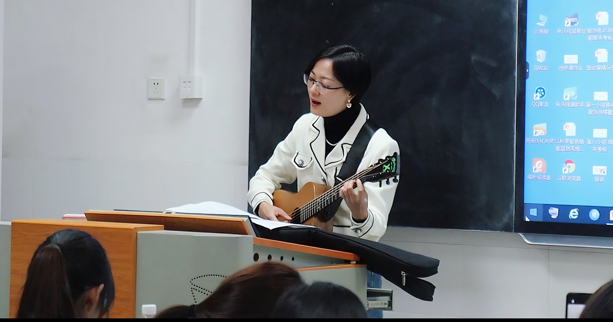 此次活动以组为单位开展。各个小组的成员们围绕随机抽取到的服饰色彩搭配考题,通过搭配方案制定、素材收集、搭配解说撰写和模特展示进行三分钟的搭配成果汇报。黄林静从小组分工、色彩搭配、服饰风格、搭配理念以及服装对模特的适配程度等方面对小组的展示进行点评发言。她对各小组的成果展示给予了肯定,也对模特搭配的不足在现场进行了调整,并提出了可行性的建议。在对模特的搭配作了调整后,十位模特进行走秀。在活动的末尾,黄林静表演吉他弹唱《梨花又开放》,营造了温馨安静的氛围,让活动在美妙的歌声中结束。