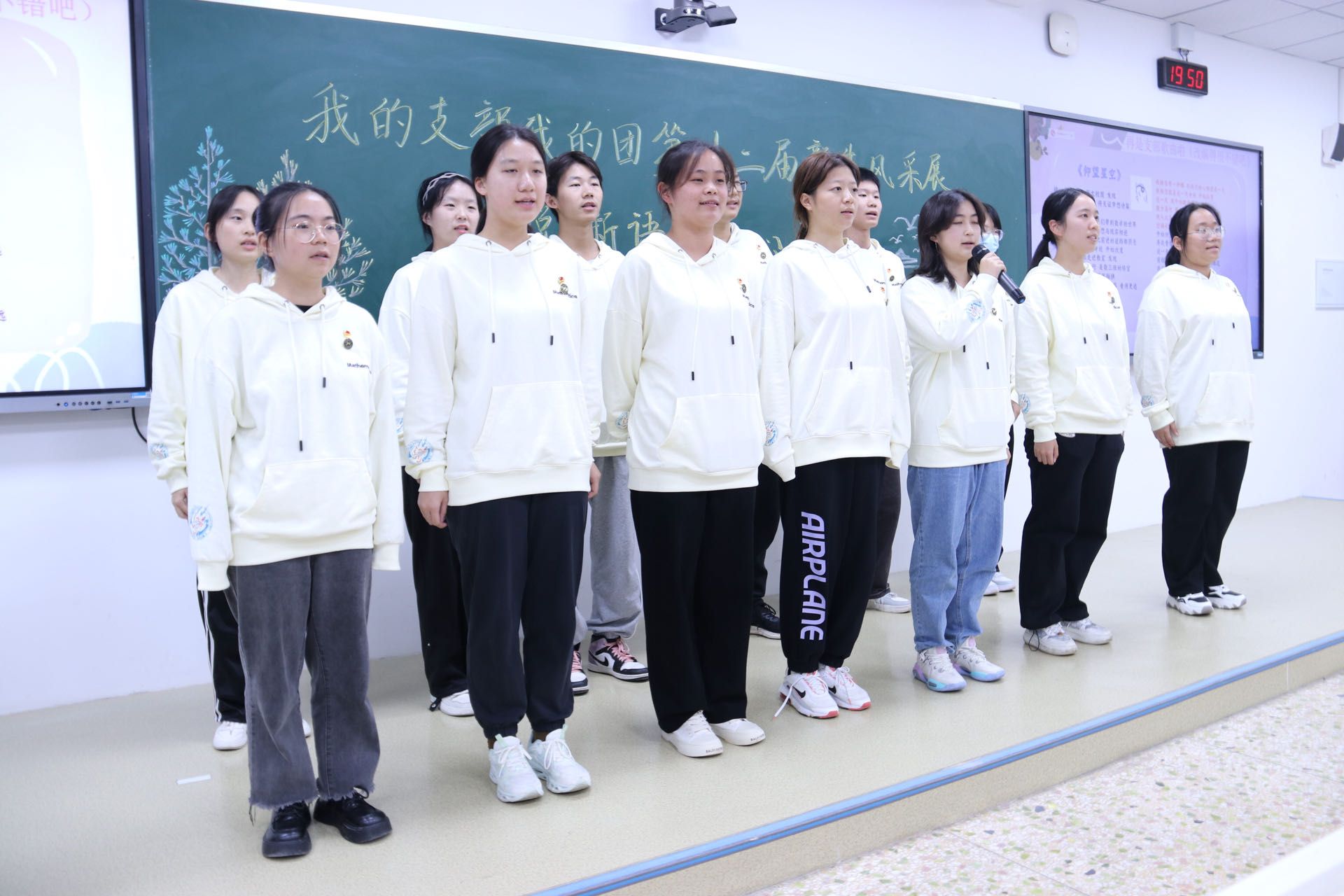 活动分为支部回头看、团支部设计展示、团支部风采展三个环节。2022级团总支李荣桦以PPT的形式,带领与会成员回顾2022级各支部建设及在过去一年里取得的成就。在此之后,2023级各团支部结合学院特色和班级特色,分别从思想教育、组织建设、学风建设、宣传建设、活力提升等方面进行支部设计成果展示。展示内容包括班级视频简介、班徽、班旗、班级口号、班歌等,展现形式包括视频、朗诵、小品、舞蹈等。