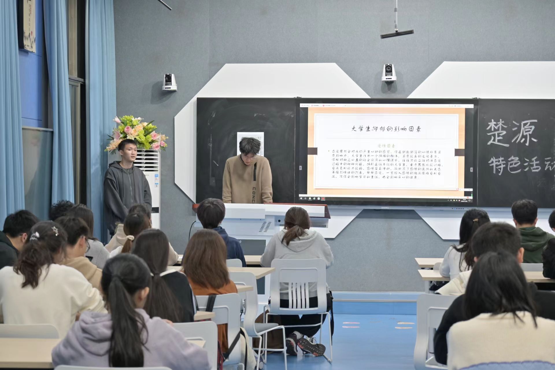 (通讯员 王慧婷 马鸿艺)为检验学生学习成果,深化课堂知识,锻炼学生团队合作和自主拓展能力,11月22日晚,新闻与传播学院楚源课程《心理学与生活》于新传院402智慧教室开展小组实践成果汇报活动暨本学期楚源课程特色活动。课程授课老师、新传院团委书记陈安琪出席并主持此次活动,新传院团委实践部协助开展。院团委学生副书记吴裕婷参加并点评,校团委实践部尹旭参加并监察,课程全体学生参与。