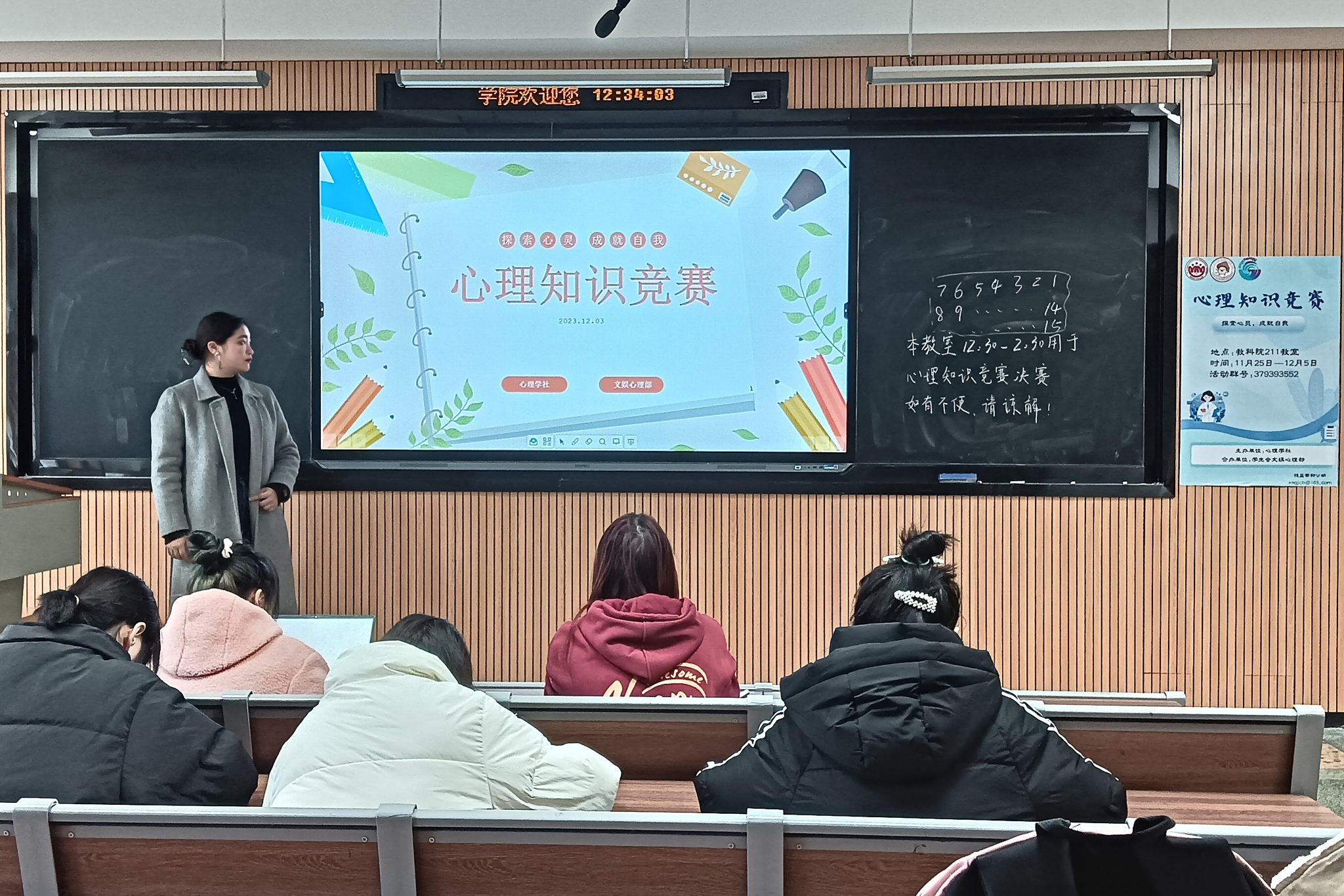 (通讯员 肖航 王欣辰)为增进同学们对心理知识的了解,12月3日下午,教育科学学院(以下简称“教科院”)心理学社联合学生会文娱心理部于教科院211教室举办了心理知识竞赛,心理学社监事长李艺和理事周玲担任此次活动负责人。
