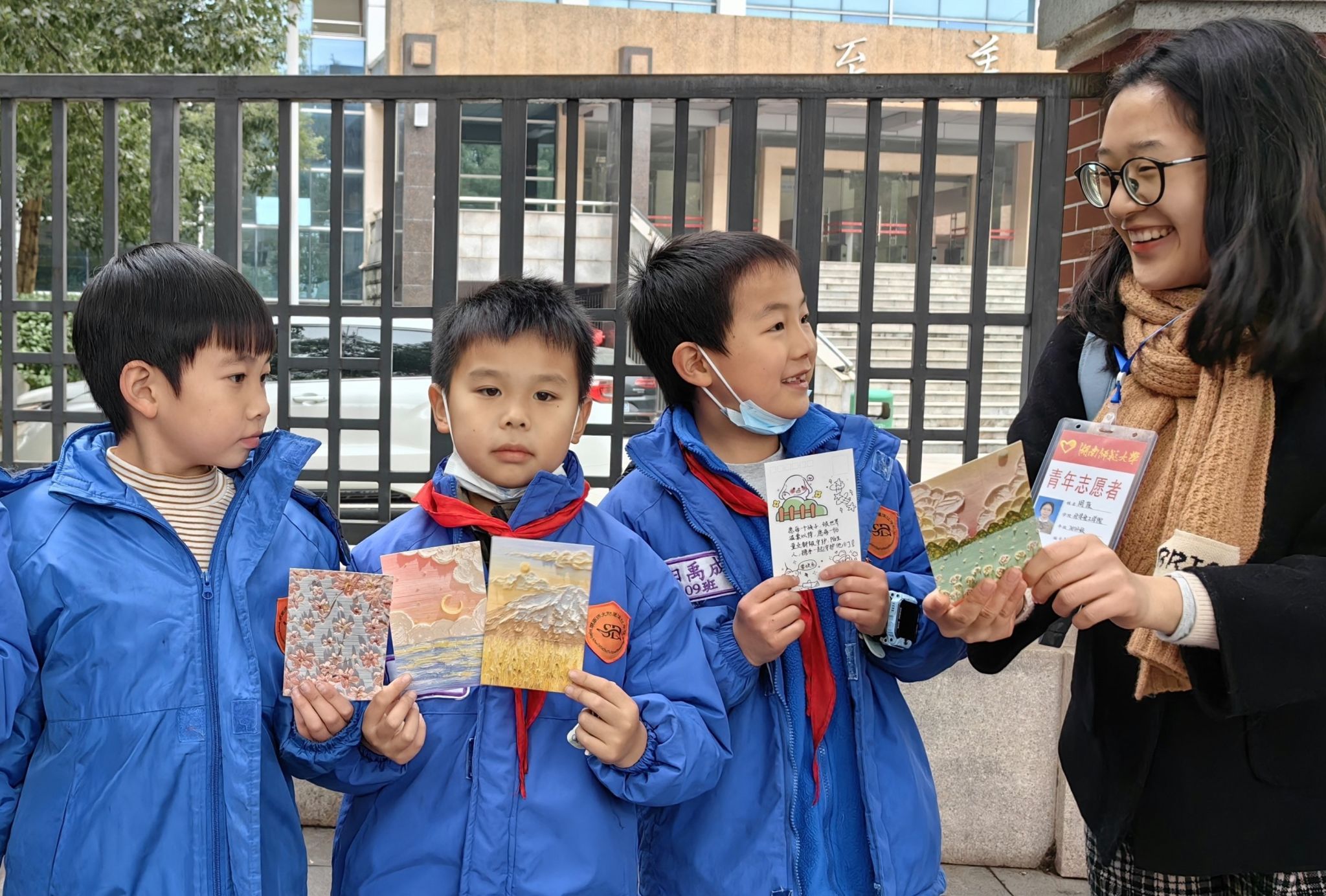 志愿者发放明信片并对其内容进行诠释