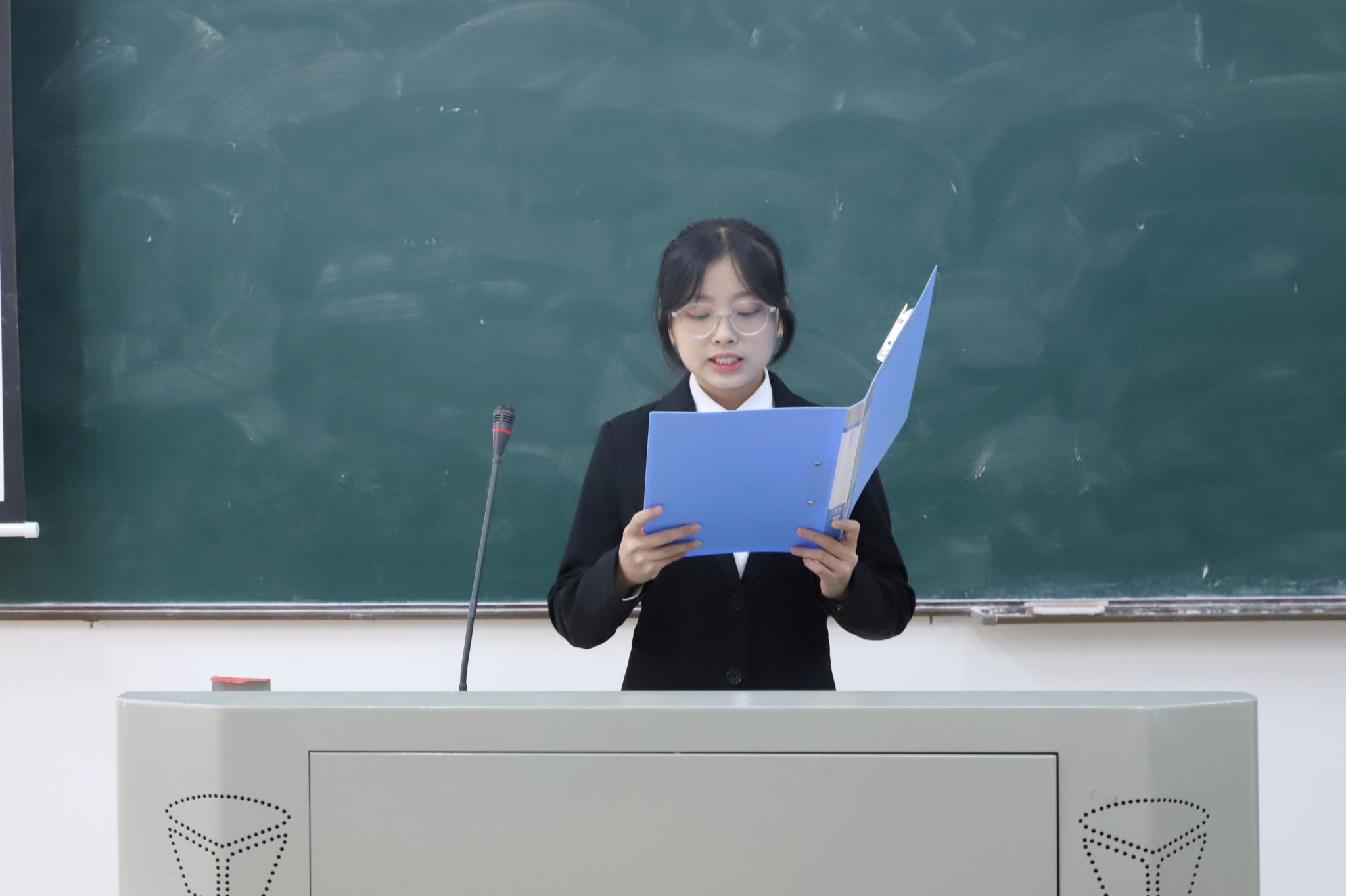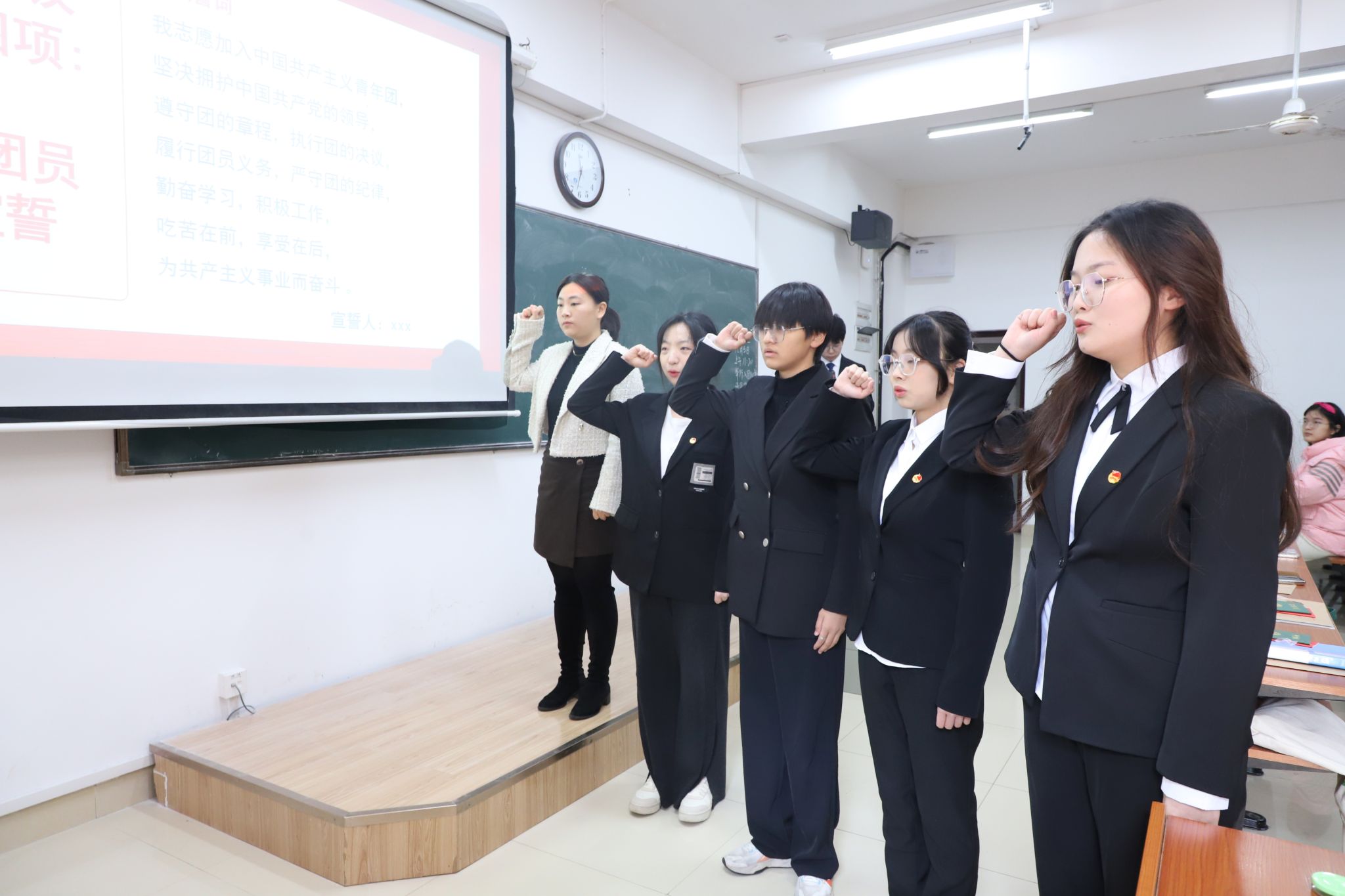 主持人为新团员颁发团徽