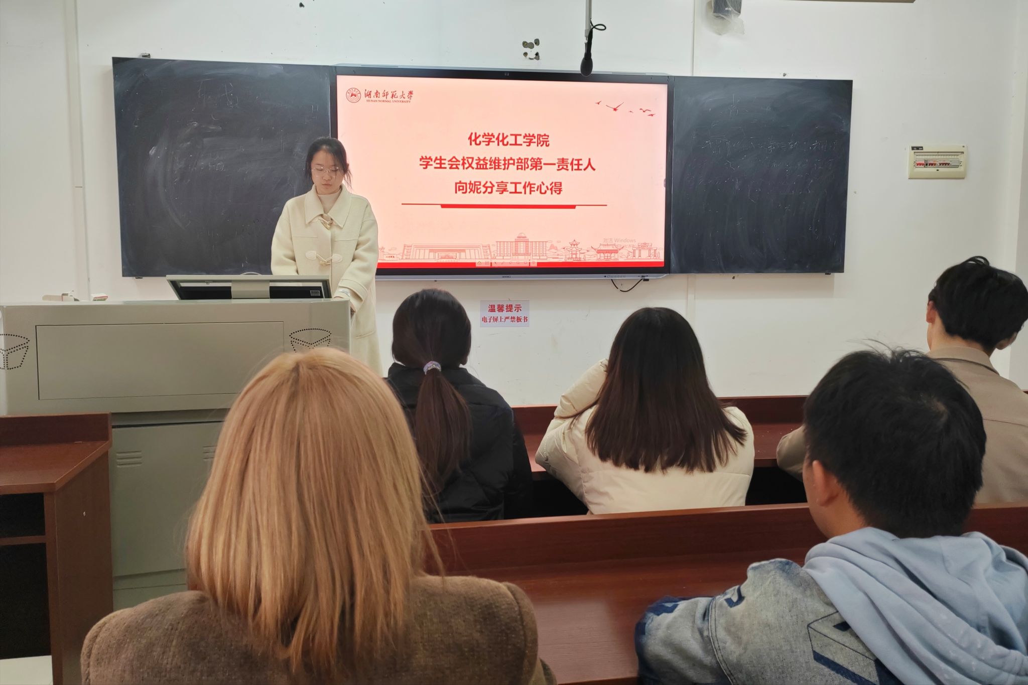 (通讯员 于涵 刘雅凯 邹慧媚)12月12日中午,化学化工学院与地理科学学院在化工院210教室开展“权益分享会”活动,参加此次活动的有两院的主席团和权益维护部全体成员,活动由化工院学生会常务主席主持。