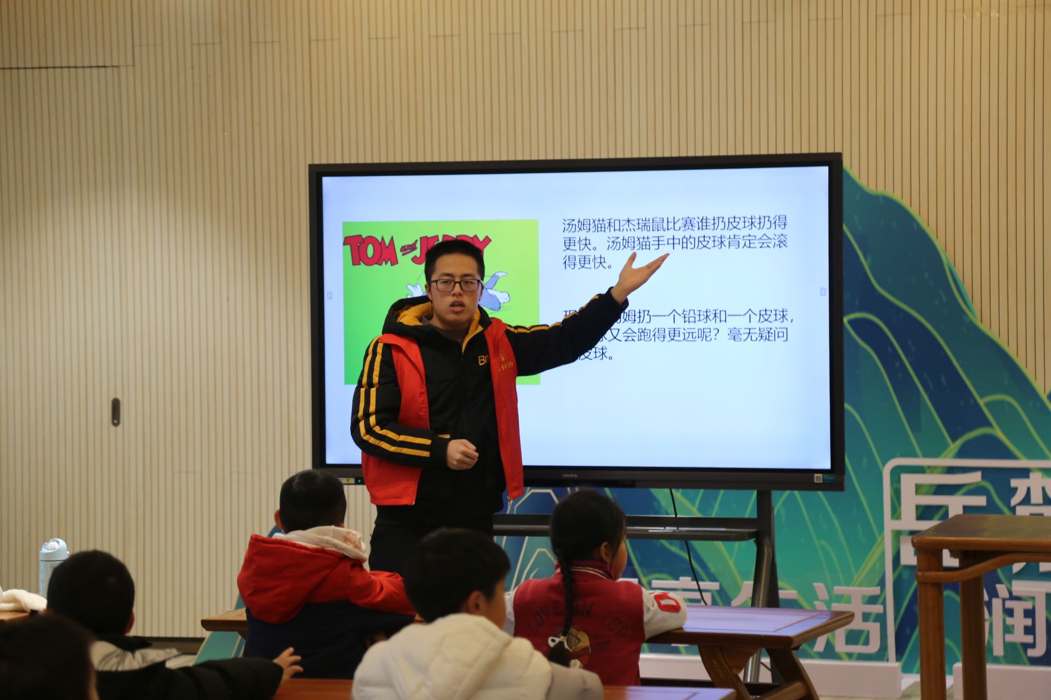 志愿者给小朋友讲述物理现象