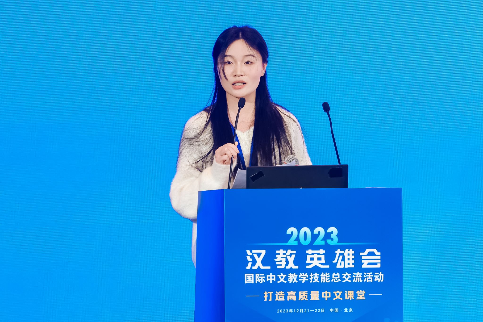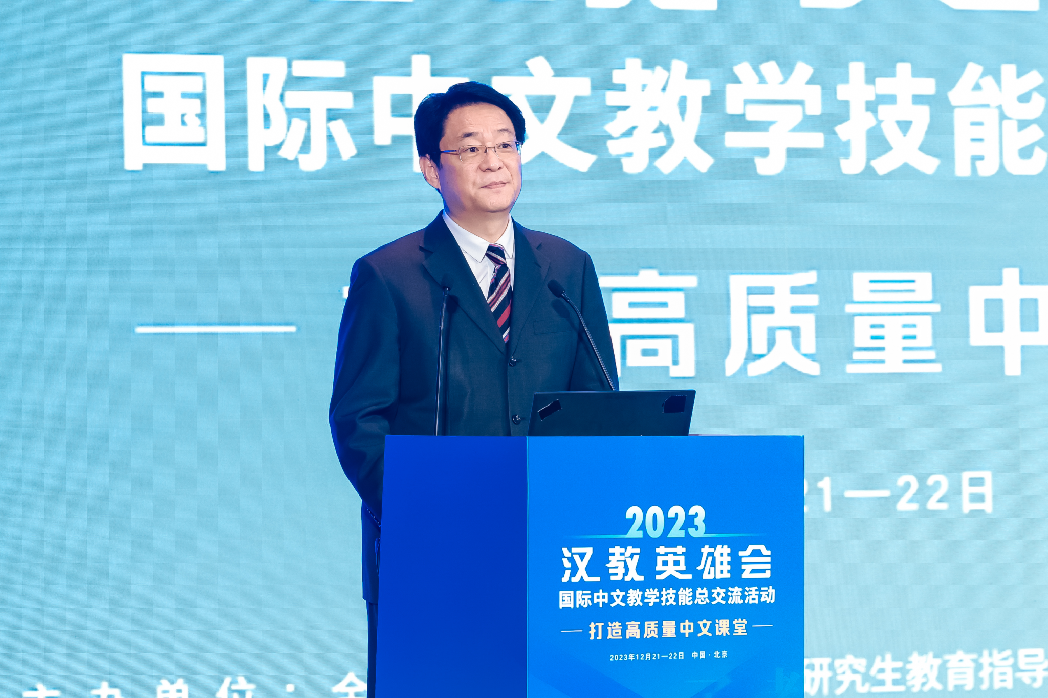 国际中文教学技能总交流活动至今已举办五届,现已成为国际中文教育领域的一个响亮品牌,对促进国际中文教育专业学位人才培养和教师队伍建设,推动国际中文教育高质量发展,发挥了重要作用。2023届“汉教英雄会”国际中文教学技能交流活动以打造“高质量中文课堂“为主题,吸引了来自东北、华北、华东、西南、西北、中南6个片区,142所院校,共178支师生队伍的热情参与。经各片区专家评选、推荐,共推选出了18支教师团队和人18支学生团队,齐聚一堂展示教学风采。此外,还有来自阿联酋、泰国的本土汉语教师参与了展示。本次活动群英荟萃,各团队大展身手,充分展现了创新精神和卓越风采,交流碰撞出别样的火花。