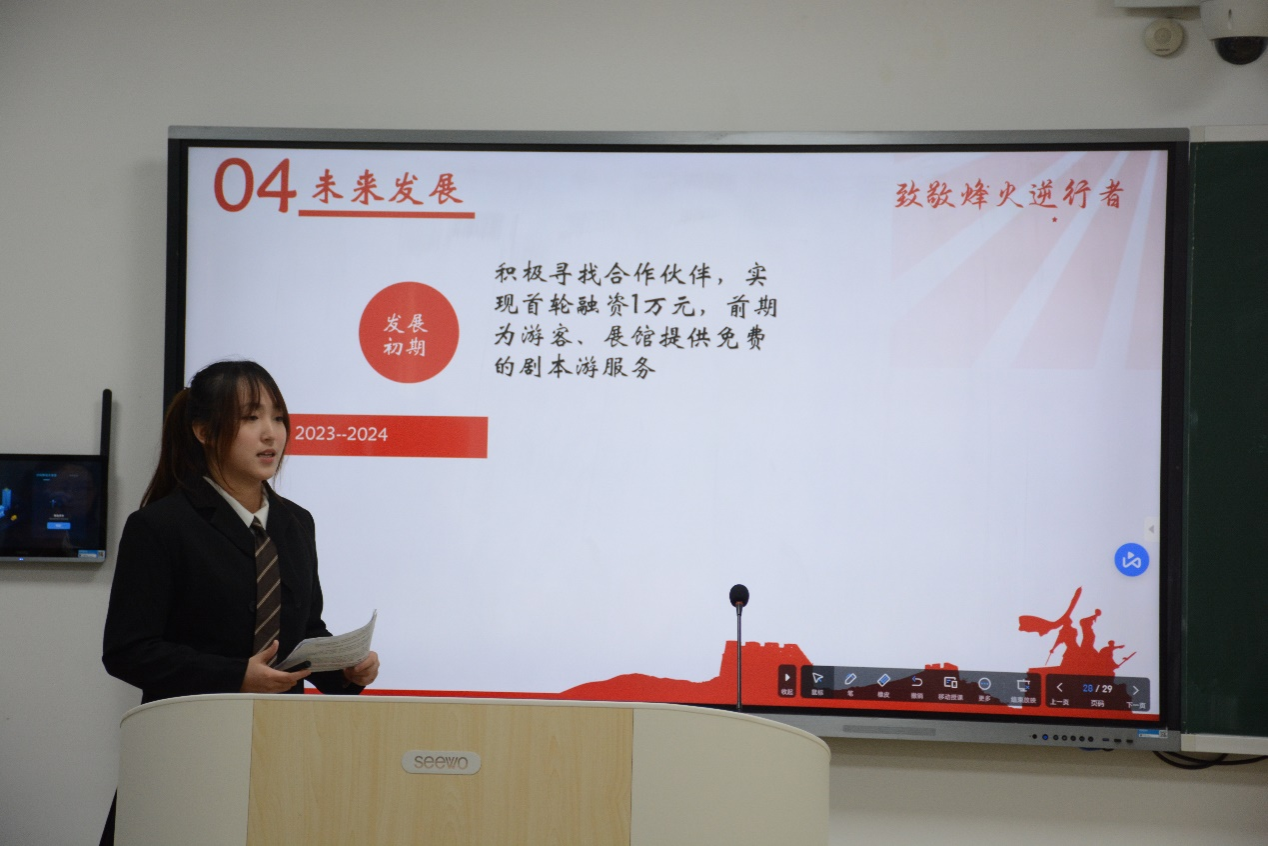 比赛过程中,各个团队负责人围绕项目背景、项目介绍、营销策略、财务规划等方面进行了具体介绍。评委们针对各组的汇报情况,从项目定向、项目融资、技术研发、团队协作、风险预估等多方面进行提问和评价,并为各项目的进一步优化完善提出了切实可行的建议。
