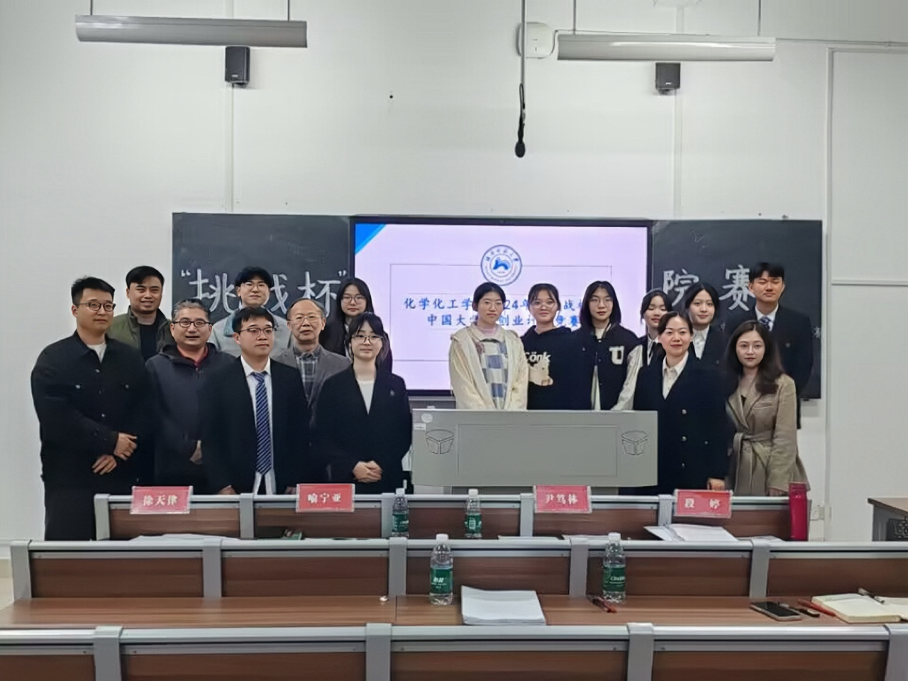 (通讯员 王菲 秦微 邹慧媚)3月12日中午,化学化工学院团委青年创新创业部在化工院117教室举办“挑战杯”院赛。此次比赛到场的评委有:化工院党委副书记段婷,化工院原院长、政协十一届湖南省委员会委员、石化新材料与资源精细利用国家地方联合工程实验室创始主任尹笃林,石化新材料与资源精细利用国家地方联合工程实验室副主任喻宁亚,青年教师兼职辅导员、博士徐天律,化工院团委书记张婧,化工院23级辅导员唐健清。此次共有四支参赛队伍,各参赛队伍全方位展现自己的参赛成果。