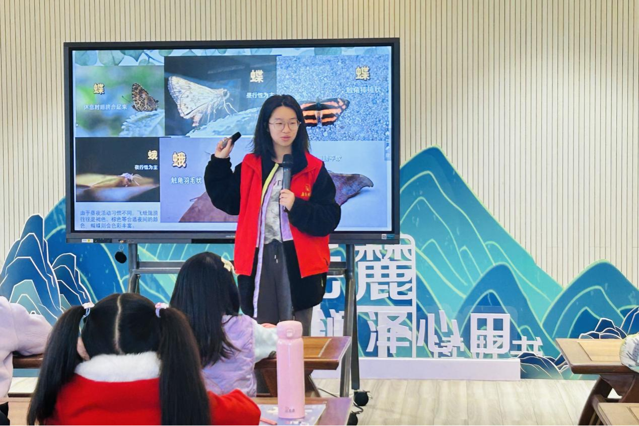 活动由昆虫知识科普、互动问答和动手创作三个部分组成。主讲人通过PPT的形式,讲解与生活中常见昆虫的身体特征和生活习性相关的知识,如不同蝶的颜色的作用,蛾的繁殖习性等。同时主讲人以提问的形式与小朋友们互动,志愿者为回答问题的小朋友发放小礼品。志愿者为小朋友们分发制作昆虫模型的工具,并协助他们进行自主创作。小朋友们表示,活动内容充实有趣,通过自己动手制作昆虫模型,对各种昆虫的外形特征有了更清晰的了解。