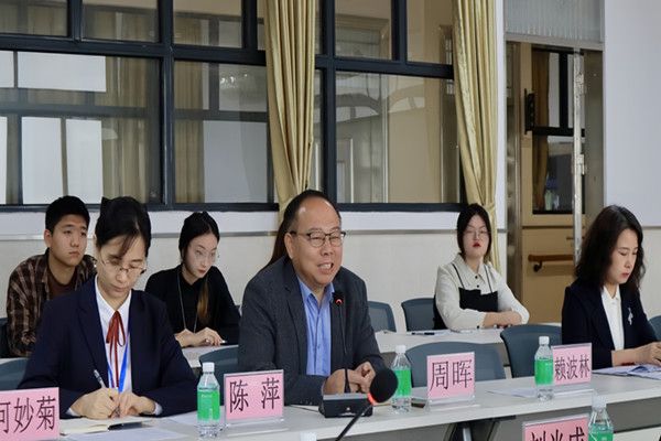 图为文学院赴太阳成集团tyc附属中学实习队指导老师黄耀红发言