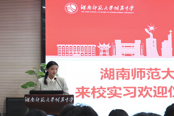 图为文学院赴师大附中星城青石实习队队长介绍实习队的相关情况