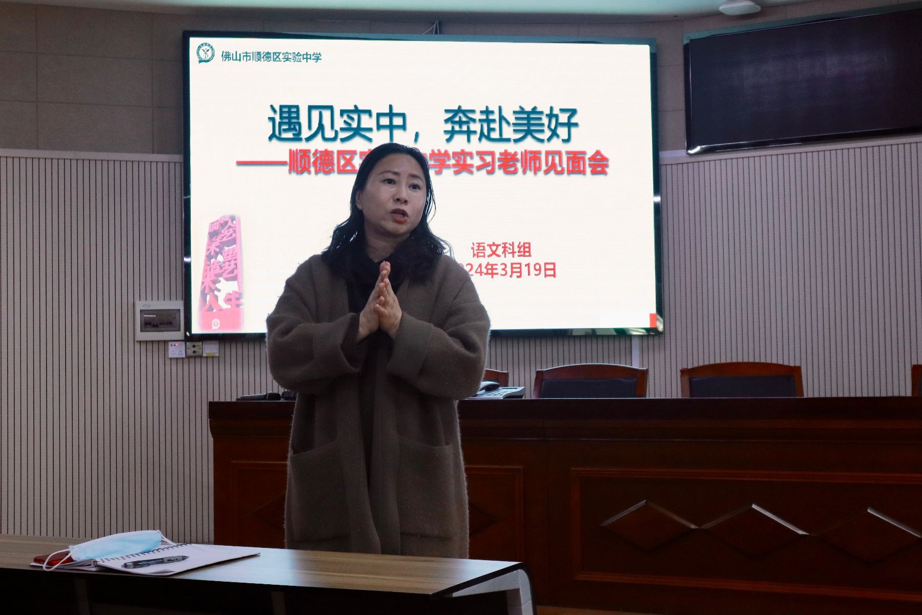 (通讯员 王烨鑫 苏旭辉)3月19日上午,顺德区实验中学语文科组召开科组会议。顺德区实验中学副校长何妙菊、语文科组组长谭瑞莲及文学院赴顺德区实验中学实习队队长在会上发言。语文科组部分教师、实习队全体队员参加会议。