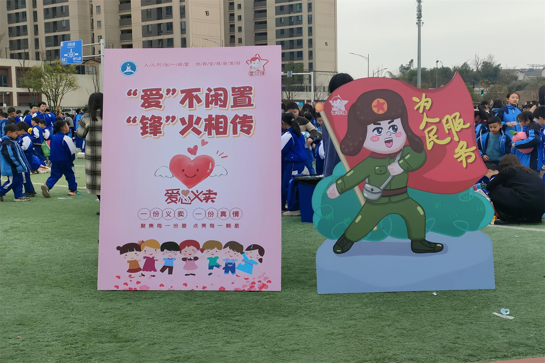 实习队队长就义卖活动发表感想:“雷锋精神感召了一代代人多行善举,成就大我,青年一代更应该学习雷锋精神,争做新时代的追随者。”活动结束后,各班学生收拾好摊位有序退场,实习队员帮助班主任清点义卖钱款。