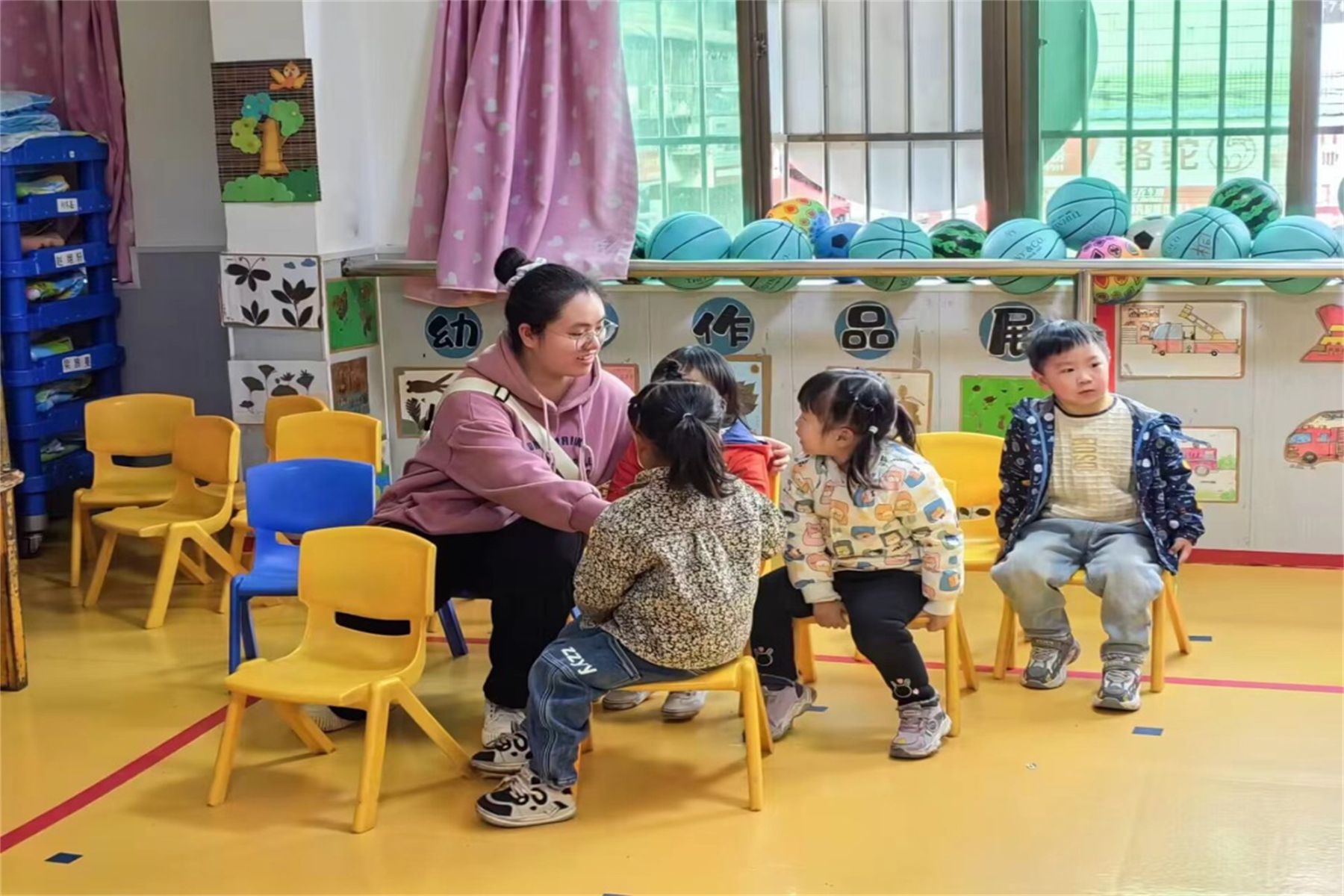 志愿者和小朋友们进行交流